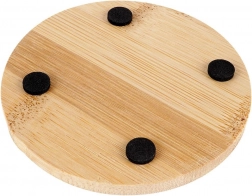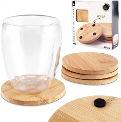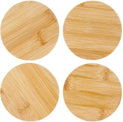 Každý podtácek má průměr 9,7 cm a výšku 0,7 cm, což je ideální velikost pro hrnky, sklenice i šálky. Spodní filcové nožky brání klouzání a chrání nábytek před poškrábáním. Bambusové dřevo je lehké, pevné, rychle schne, nepohlcuje pachy a dlouhodobě si zachovává přirozenou krásu. Údržba je snadná – stačí otřít vlhkým hadříkem. Nedoporučuje se mytí v myčce.