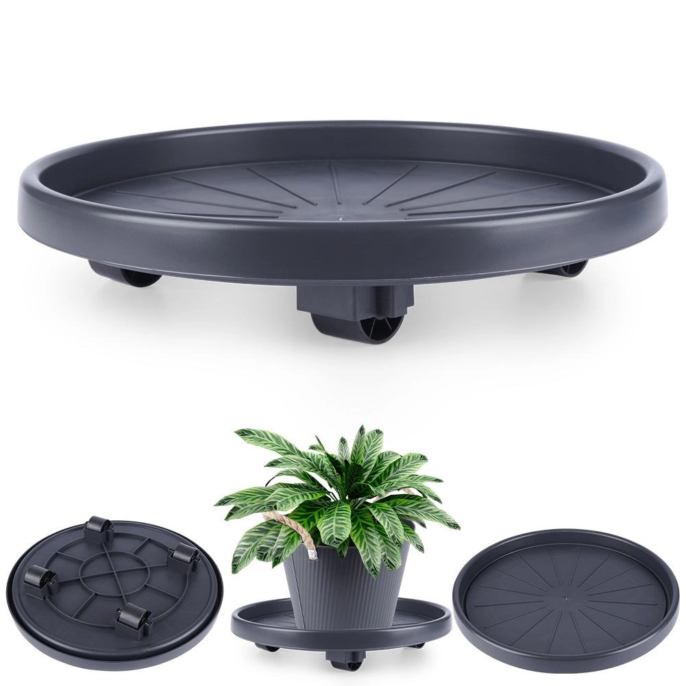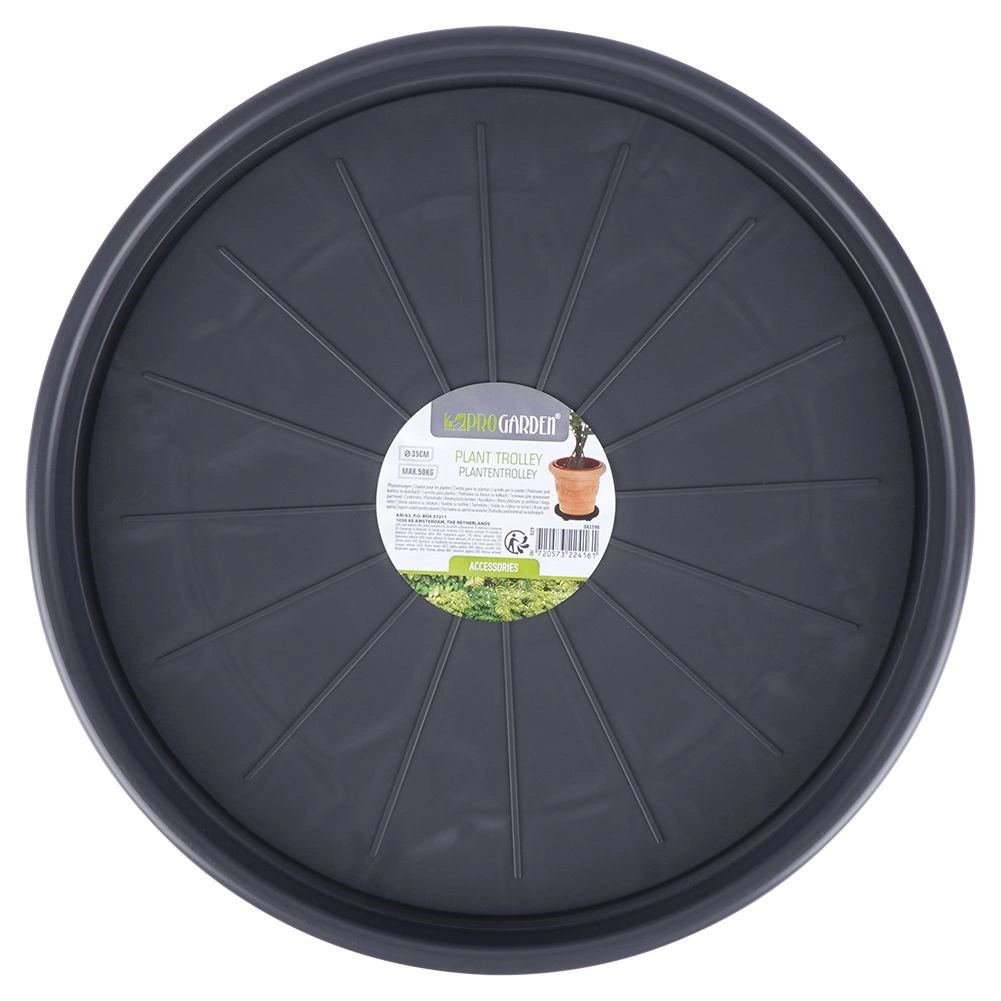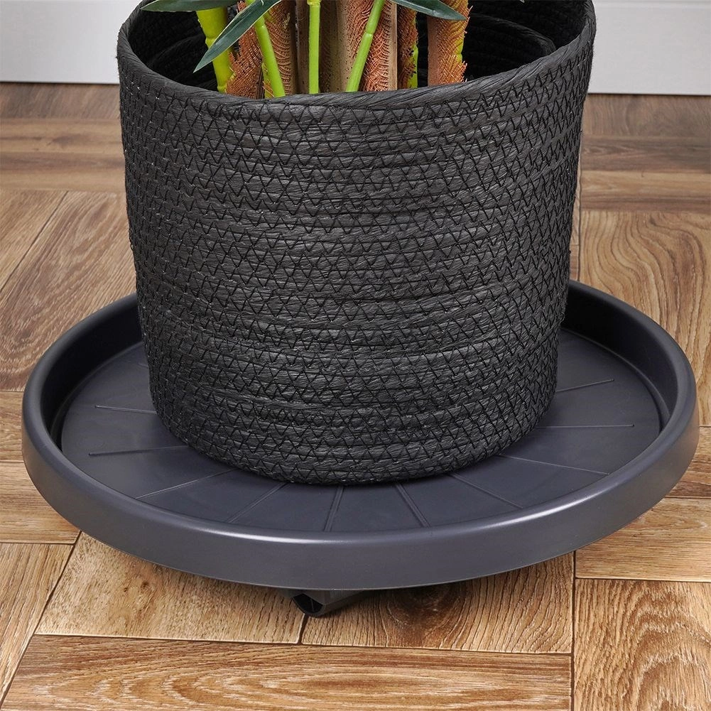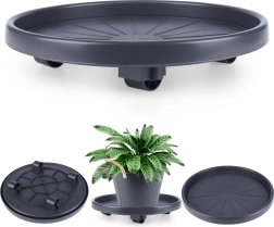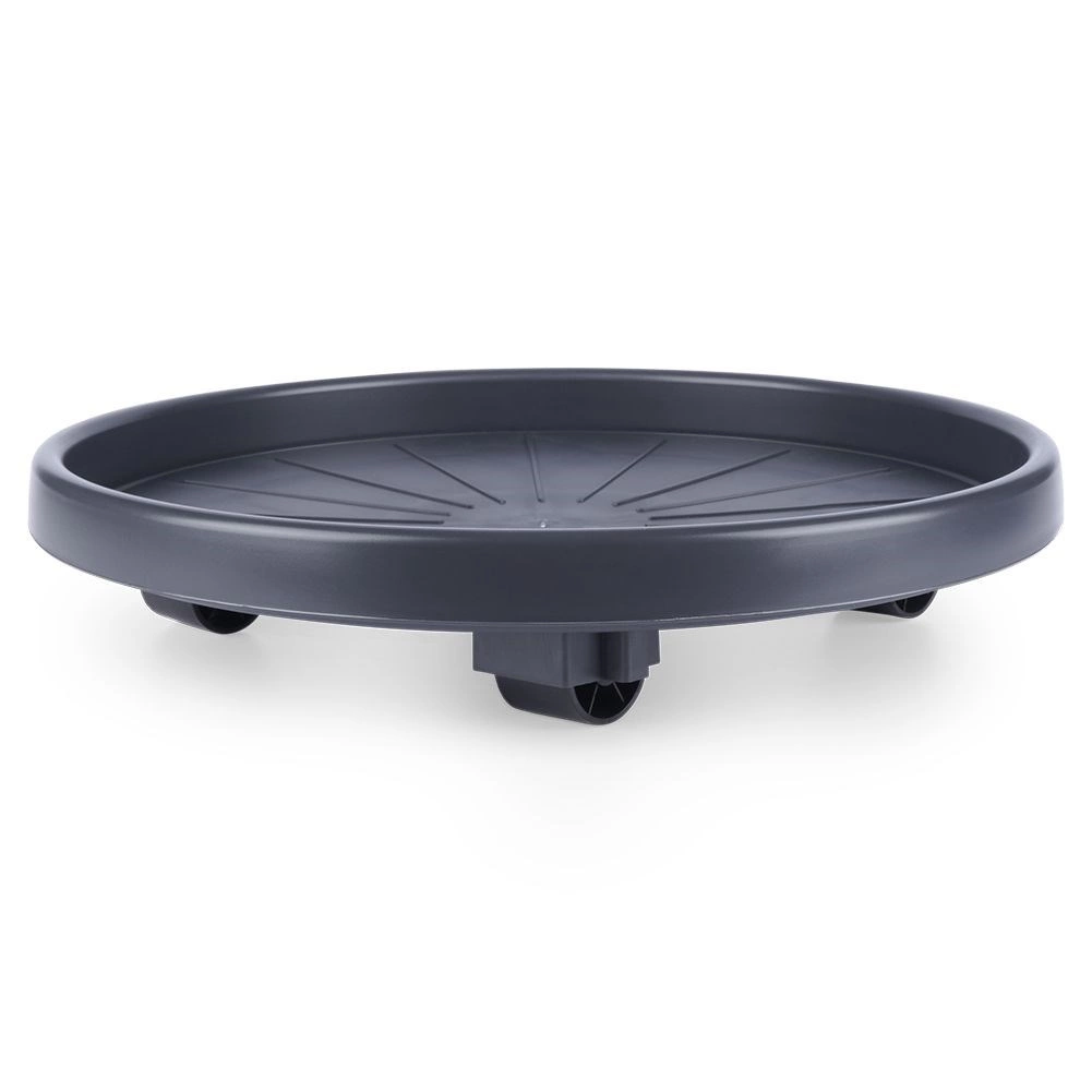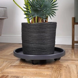 Vyrobeno z kvalitního, odolného plastu v tmavě šedém odstínu s černými kolečky pro dlouhou životnost. Podstavec je univerzální pro použití uvnitř i venku – usnadní úklid, změny aranžmá i sezónní přesuny rostlin a zároveň chrání povrch podlah.