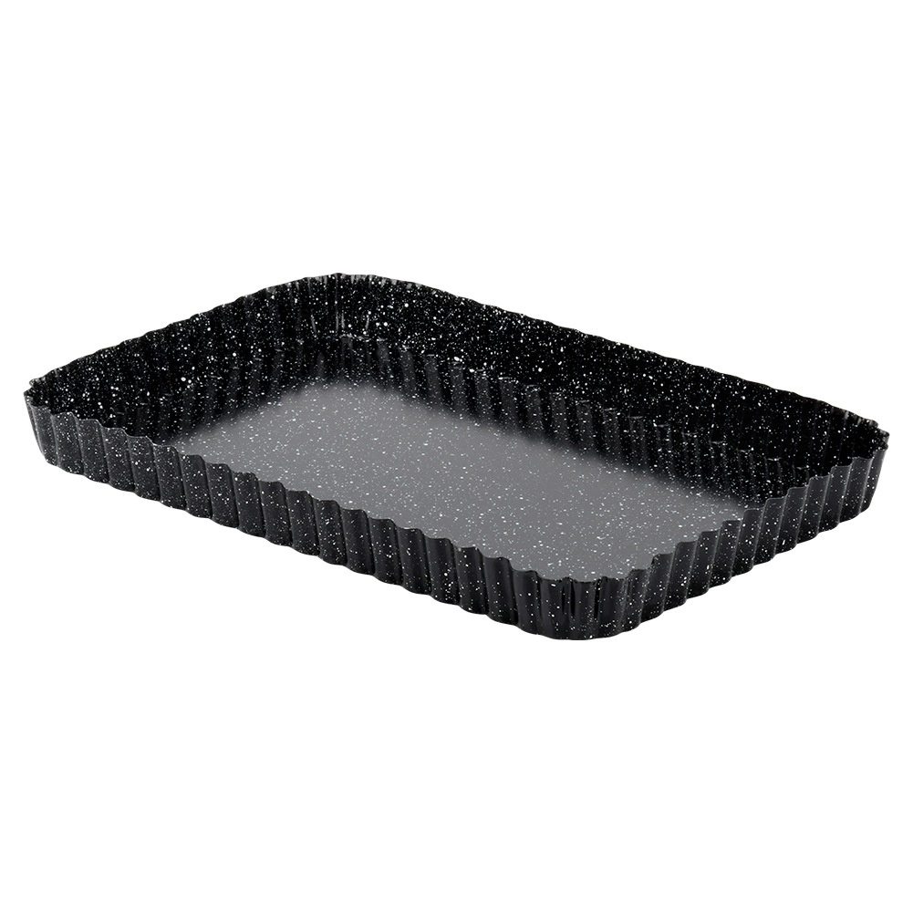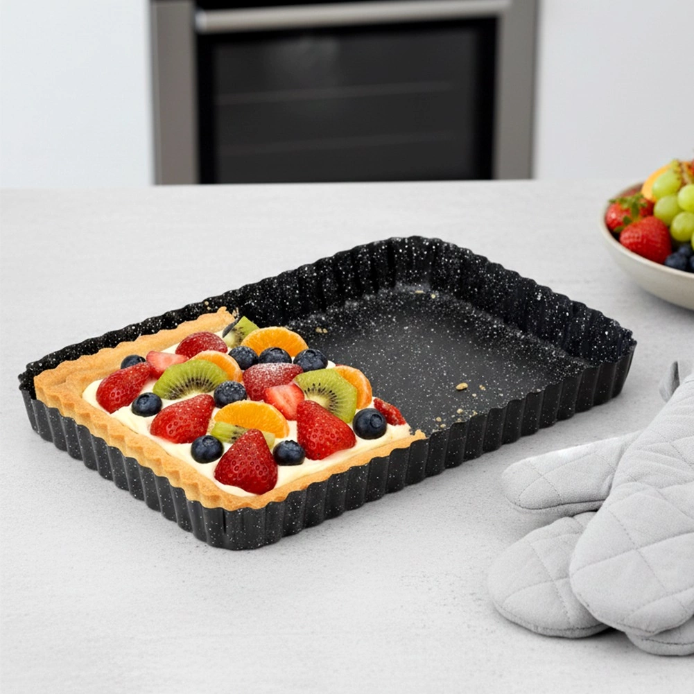 Obdélníková forma s flétovaným okrajem a vyjímatelným dnem je skvělou volbou pro domácí i sváteční pečení. Díky kvalitní uhlíkové oceli s granitovým povrchem výborně vede teplo a pomáhá dosáhnout dokonalého a rovnoměrného výsledku bez připalování.