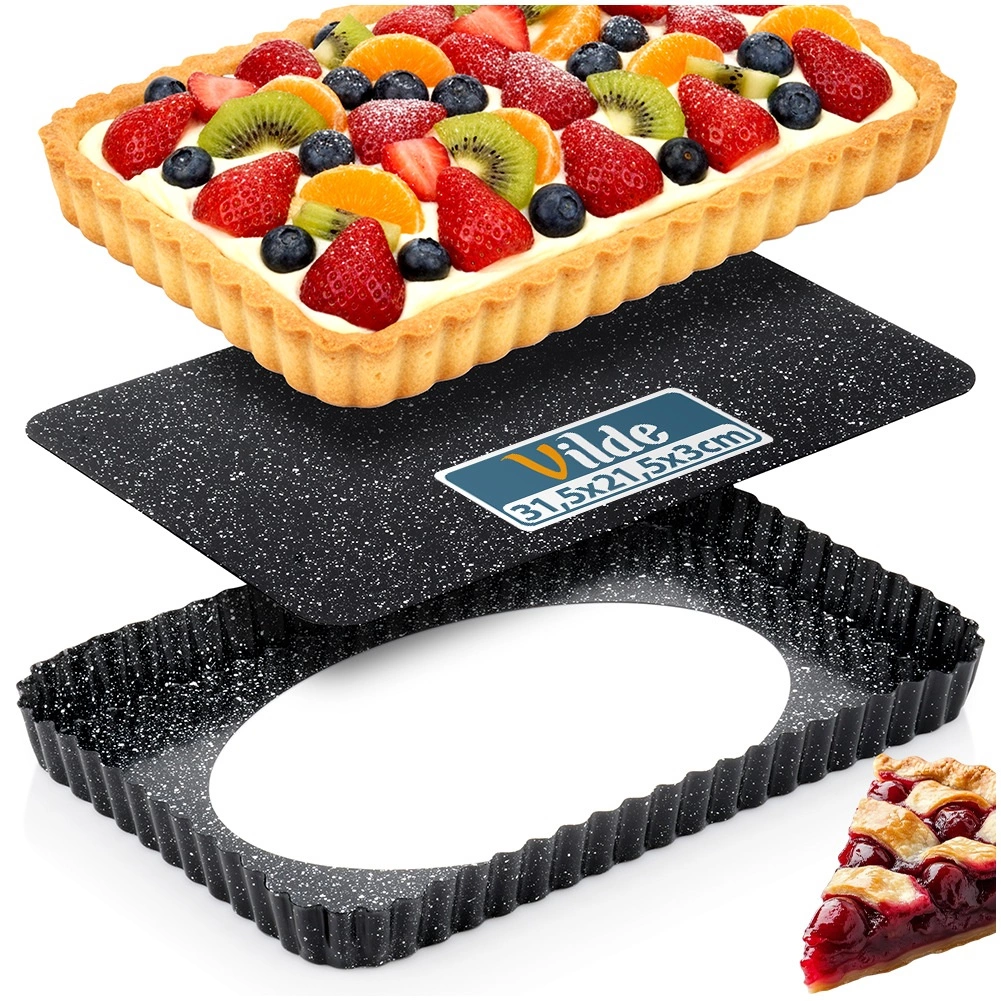 - Univerzální rozměr 31,5 × 21,5 × 3 cm pro tarty, koláče, quiche a jiné dezerty