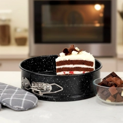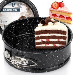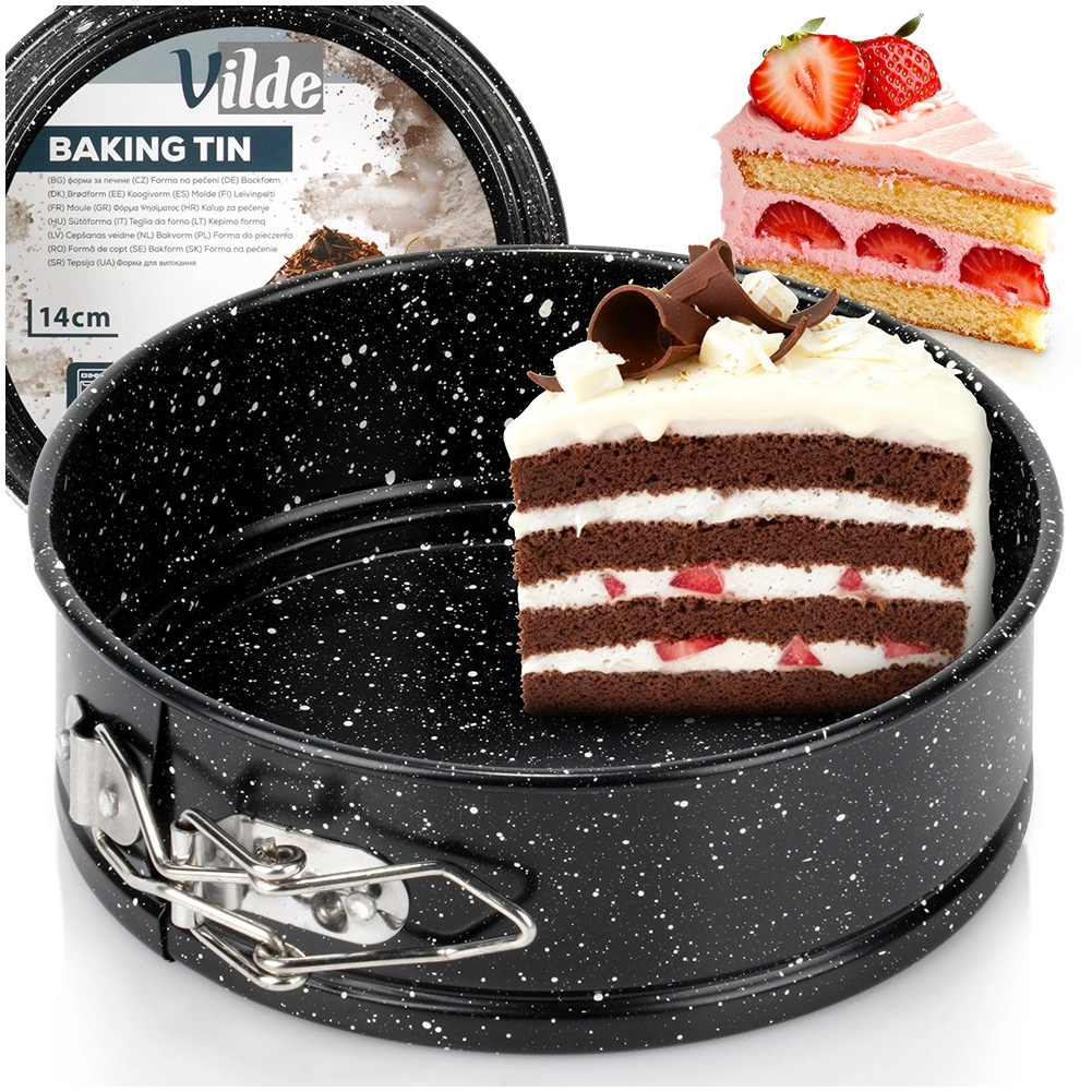 Kompaktní kulatá dortová forma o průměru 14 cm s rozepínacím okrajem a vyjímatelným dnem pro snadné vyjmutí dezertů. Vyrobena z odolné uhlíkové oceli s nepřilnavou granitovou povrchovou úpravou, zajišťuje rovnoměrné pečení až do 230 °C. Ideální na mini dorty, cheesecaky, piškoty i studené dezerty pro každodenní pečení.