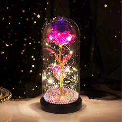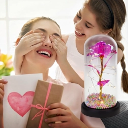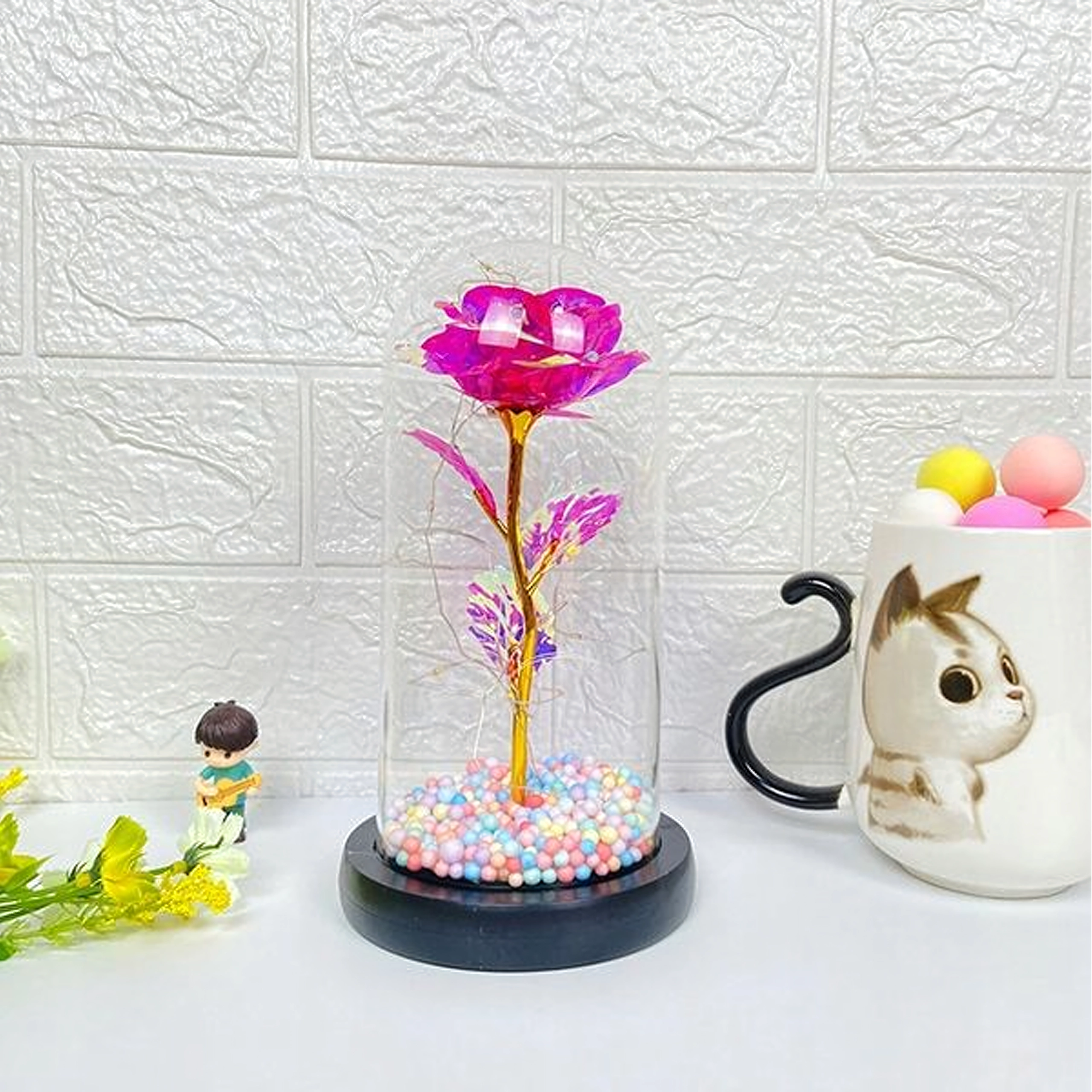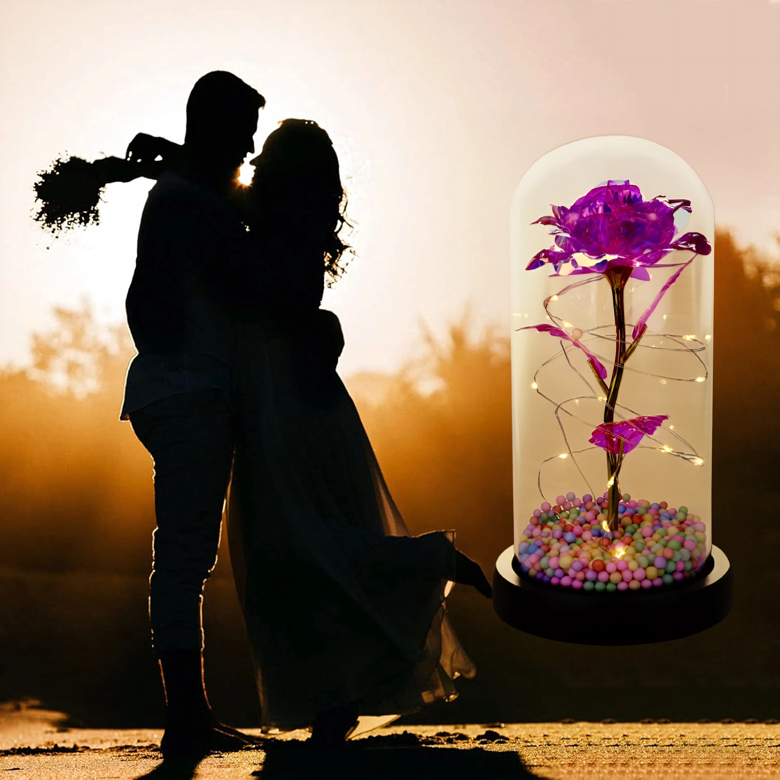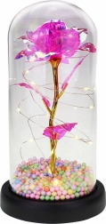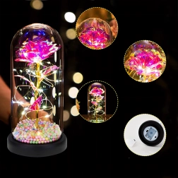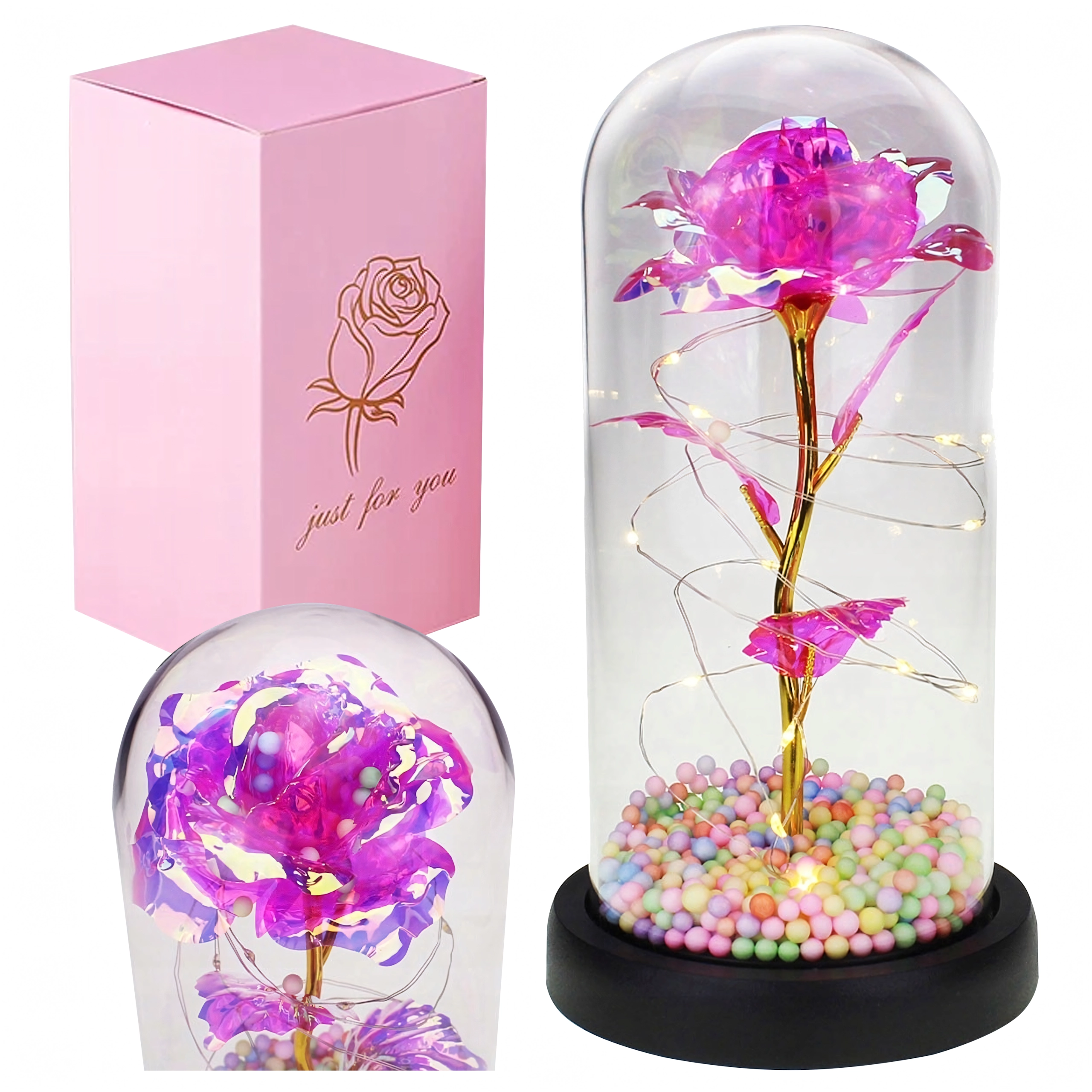 Elegantní LED růže pod skleněným dómem rozzáří každý interiér teplým, třpytivým světlem. Kombinuje moderní LED osvětlení s nadčasovým symbolem lásky – růží – a vytváří tak působivý doplněk domova i nezapomenutelný dárek. Dóm chrání květ před prachem a podtrhuje jeho jemnou záři.
