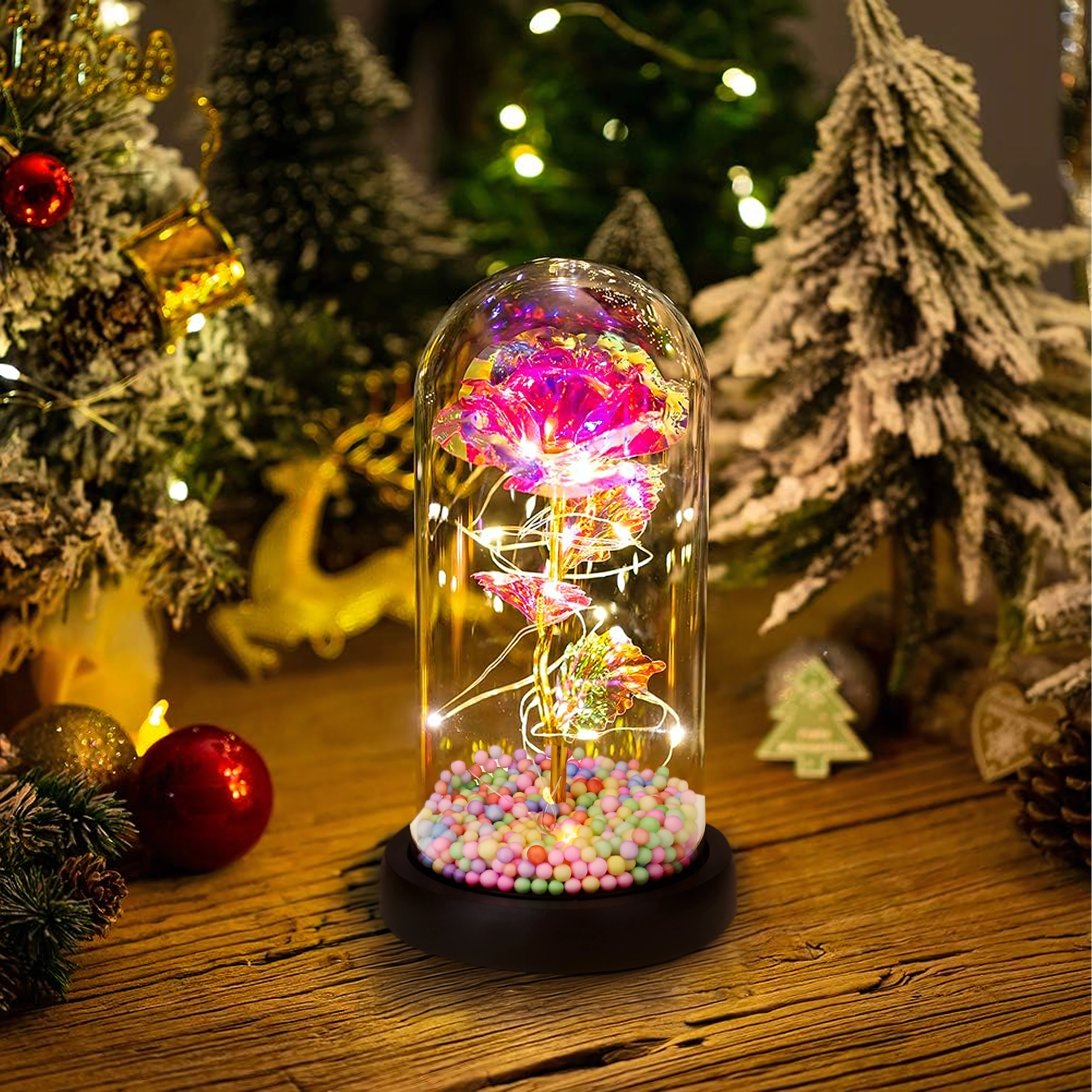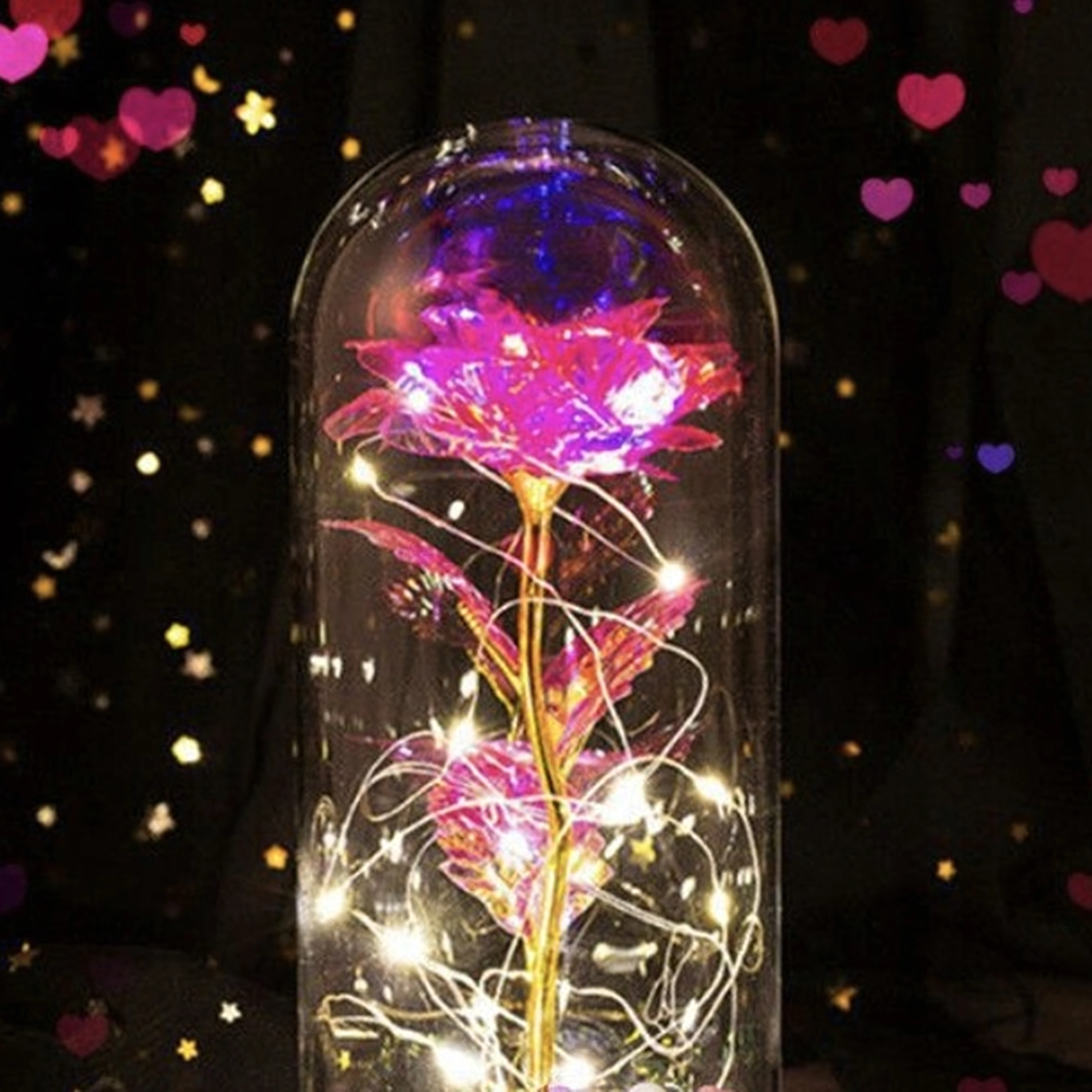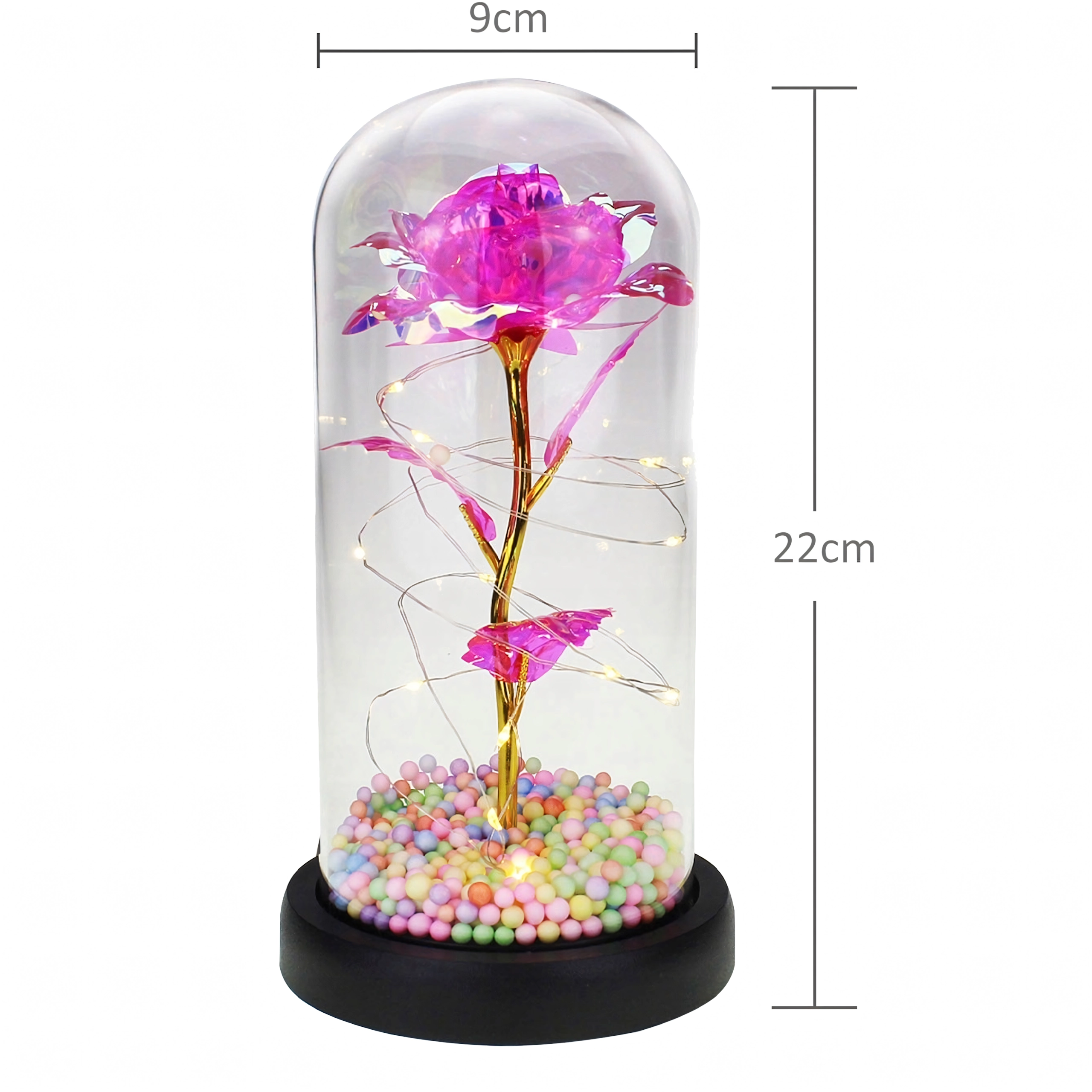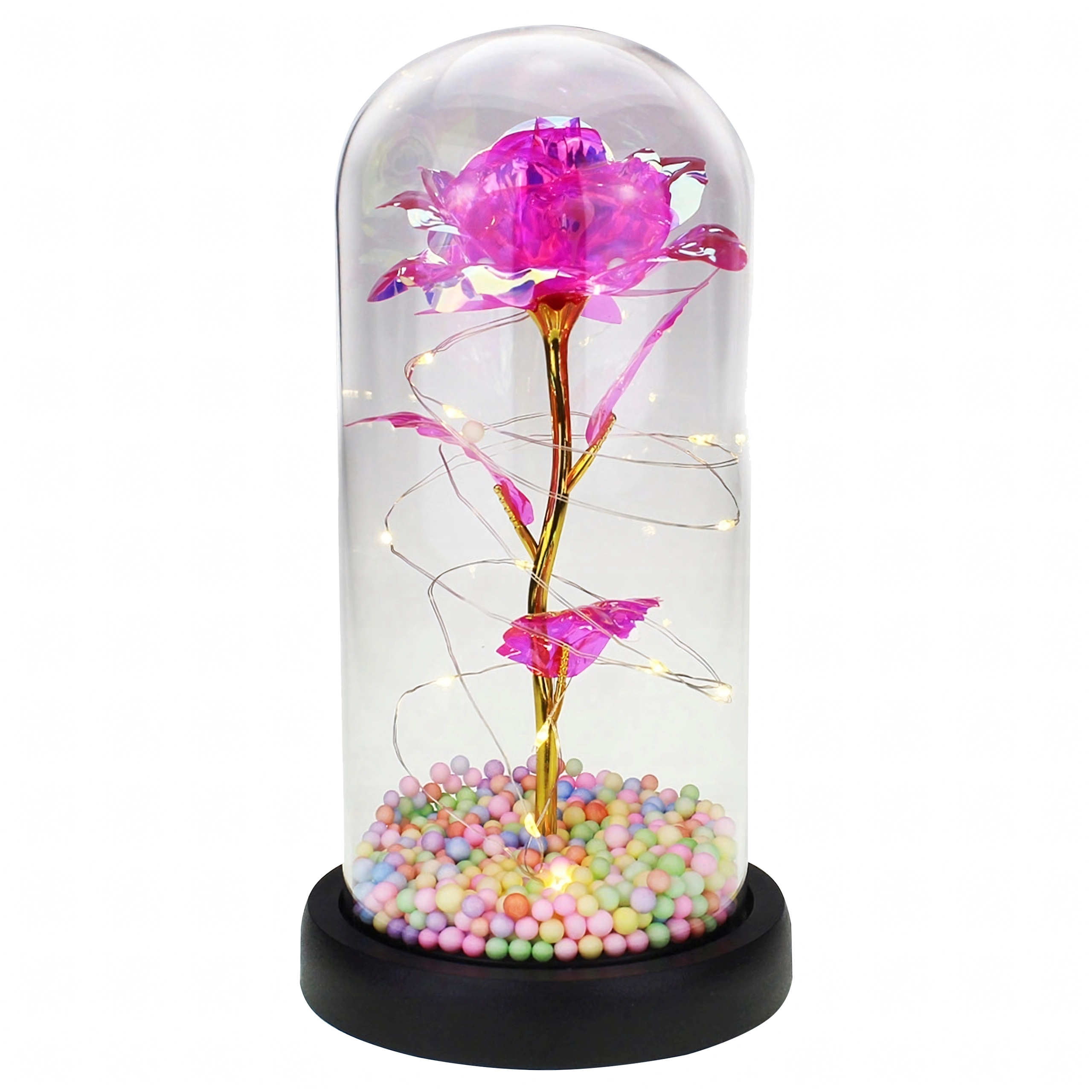 Okouzlete své blízké stylovou dekorací: LED růže ve skleněném dómu na elegantním černém podstavci. Jemné mikro LED diody vytvářejí romantické ambientní osvětlení, které se hodí do ložnice, obýváku i na slavnostní stůl. Realisticky zpracované okvětní lístky, ochranný průhledný kryt proti prachu a napájení z baterií pro snadné umístění kamkoli. Skvělý tip na dárek k narozeninám, výročí i Valentýnu.