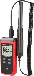 Kompaktní digitální měřič teploty a vlhkosti UNI-T UT333S s externí sondou na spirálovém kabelu poskytuje rychlé, přesné a spolehlivé měření v těžko dostupných místech. Nabízí rozsah -10 až 60 °C, 0–100 % RH, přepínání °C/°F, funkce MAX/MIN, Data Hold, podsvícený displej a automatické vypnutí.
