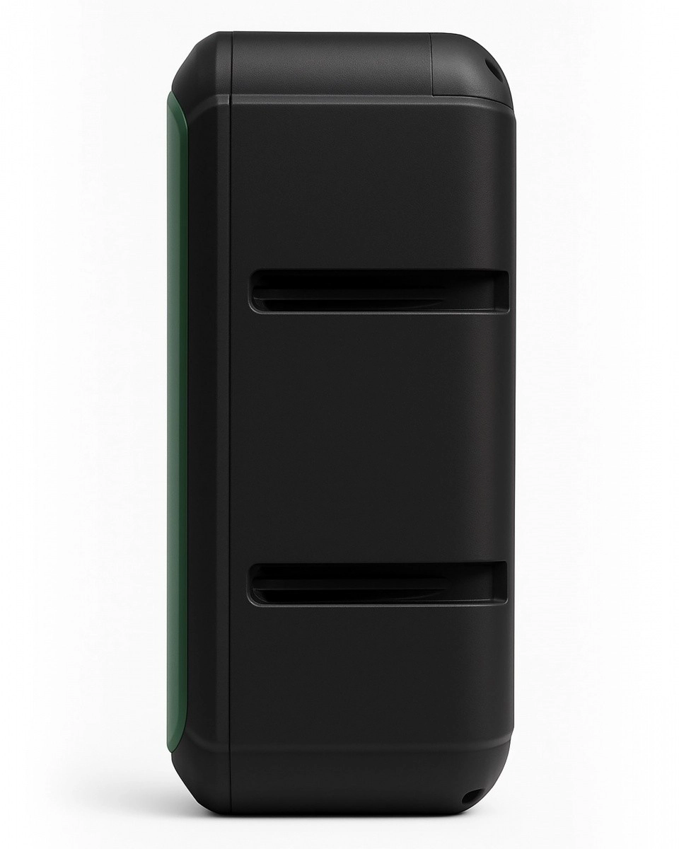 Tři přední měniče za kovovou mřížkou poskytují čisté výšky i pevné basy. Ideální pro domácí poslech i venkovní párty.