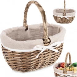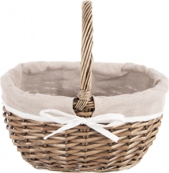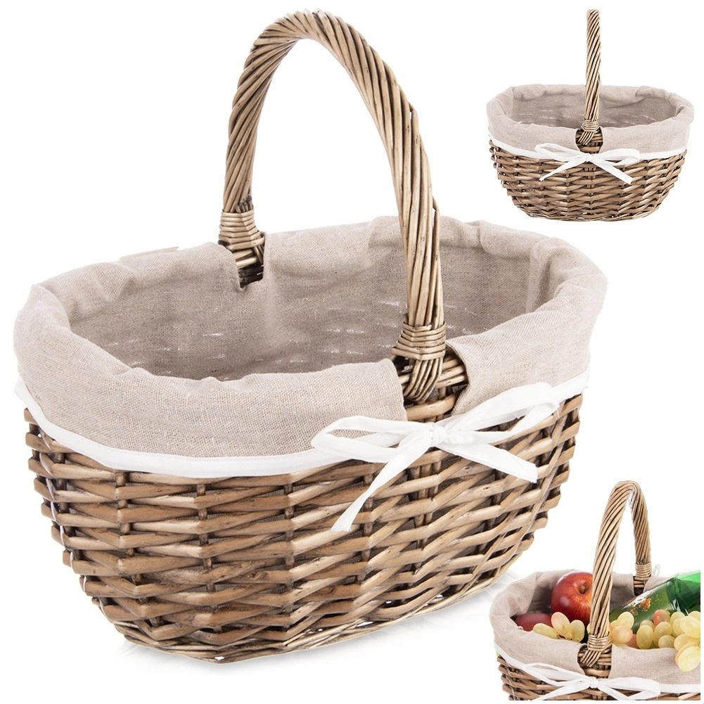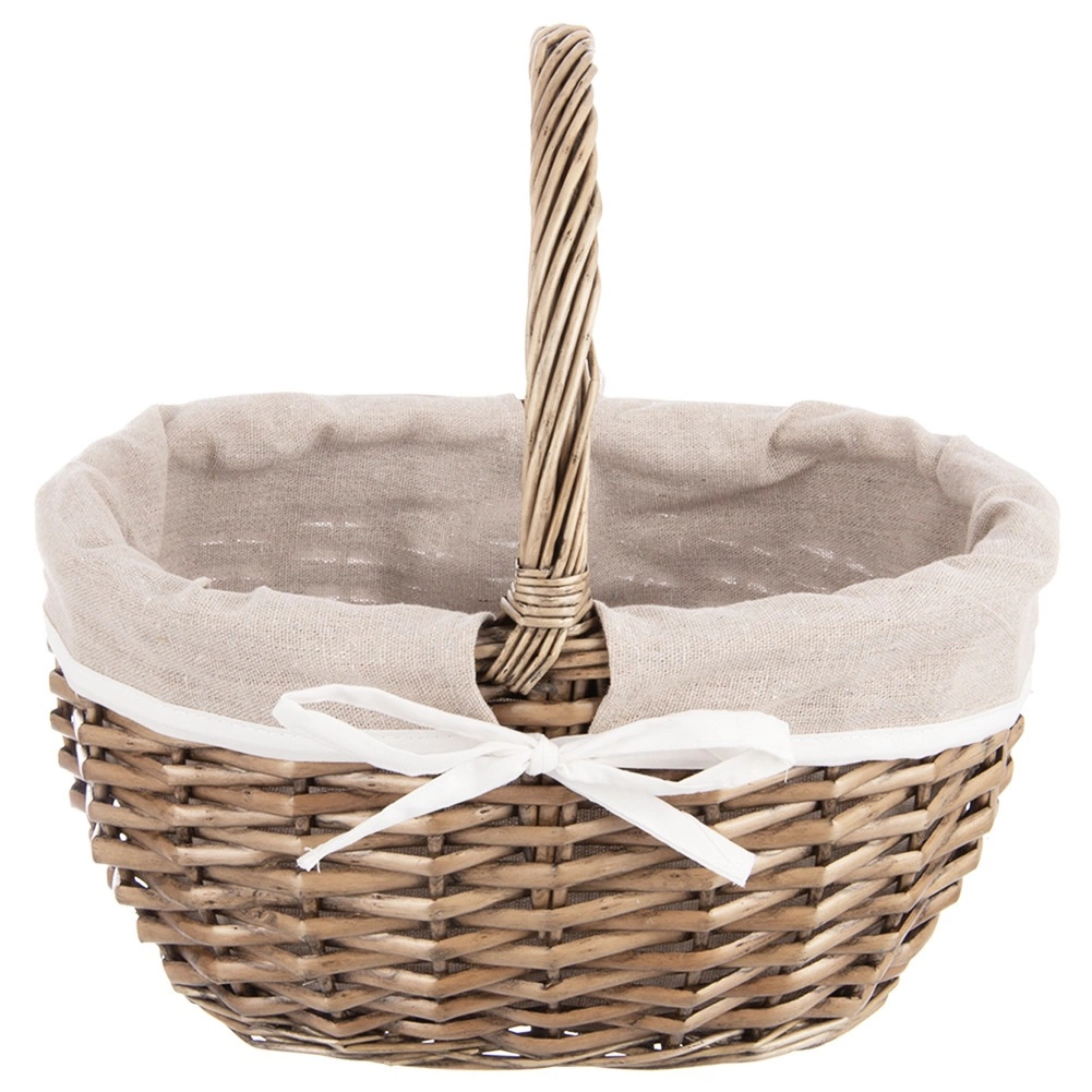 Elegantní proutěný koš s pevnou rukojetí a vyjímatelnou látkovou vložkou je ideální na piknik, nákupy i domácí skladování. Ručně pletená přírodní vrba zaručuje odolnost a jedinečný vzhled, béžová textilní podšívka s bílou stužkou dodává koši šmrnc a lze ji snadno vyprat. Praktické rozměry 32,5 × 24 × 32 cm usnadní přenášení i organizaci věcí.
