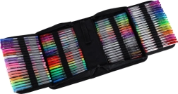 Objevte univerzální set pro školu, kancelář i volný čas: 100 gelových per v bohaté paletě barev a efektů, navíc se 100 náhradními náplněmi. Přehledné rozkládací pouzdro na zip drží každé pero na svém místě, takže máte všechny barvy vždy po ruce a bezpečně uložené.
