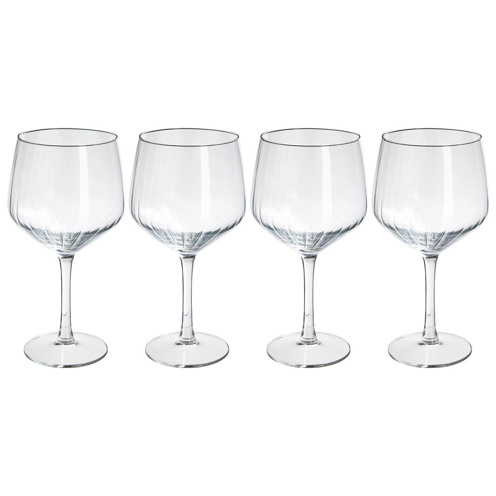 Objevte elegantní sadu čtyř sklenic na gin o objemu 580 ml, ideální pro gin tonic, koktejly i vodu či víno. Vyrobené z kvalitního čirého skla s ryhovanou strukturou pro stylový vzhled, nabízejí stabilní základnu, pohodlné držení a možnost mytí v myčce.