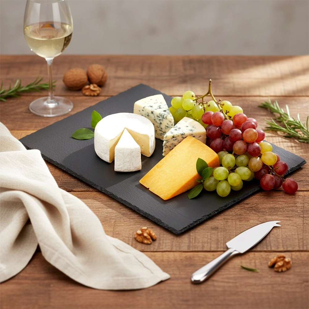Desku lze před podáváním vychladit či jemně předehřát – ideální pro sýry, dezerty, tapas i steakové přílohy.