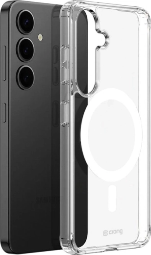 Hybridní ochranné pouzdro Crystal Shield Magnetic pro Samsung Galaxy S25+ se silnými magnety N52 podporuje MagSafe i Qi příslušenství. Odolný polikarbonát a pružné boky z TPU zajišťují spolehlivou ochranu, pohodlné ovládání tlačítek a štíhlý, průhledný profil, který zvýrazní barvu telefonu.