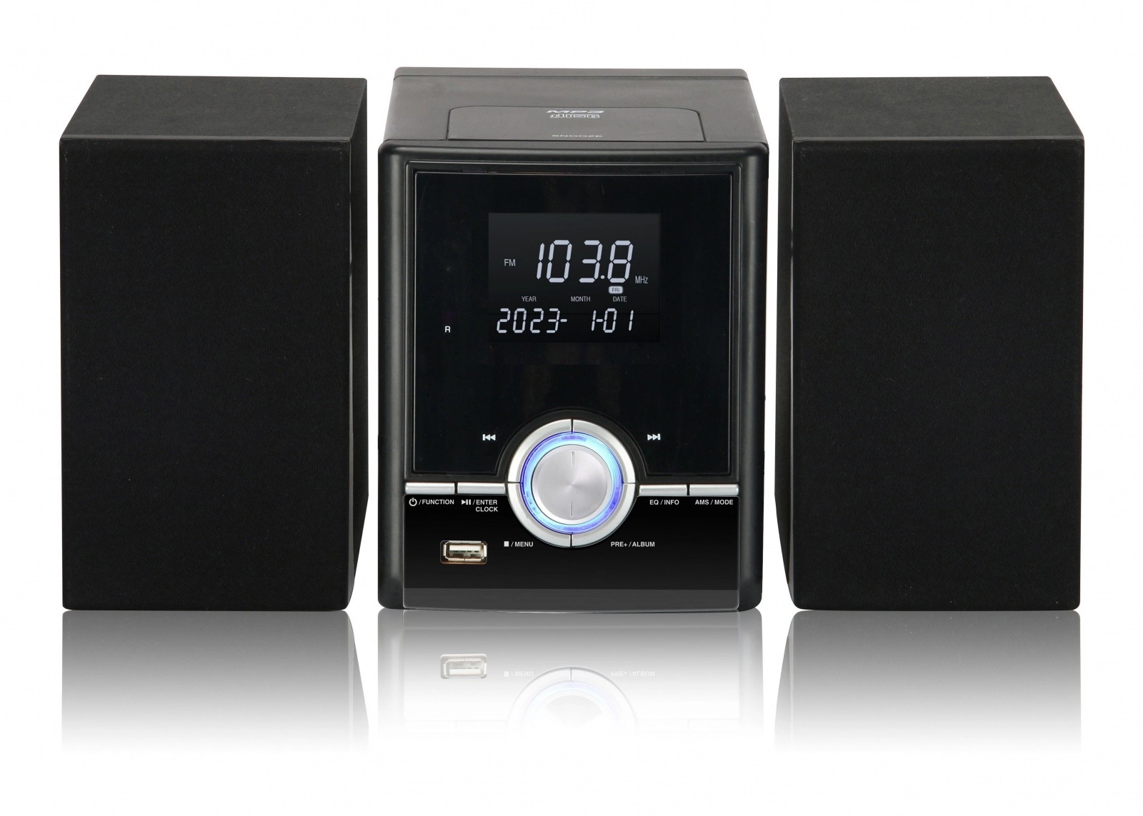 Tento elegantní černý mikrosystém přináší všestrannou domácí zábavu v jednom. Přehraje vaše oblíbené skladby bezdrátově přes Bluetooth, z klasických CD i z USB flash disku (MP3). Přehledný LCD displej zobrazuje čas, čísla skladeb a zvolené režimy. Díky FM rádiu s digitálním laděním a pamětí stanic si rychle vyberete svou oblíbenou stanici.