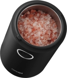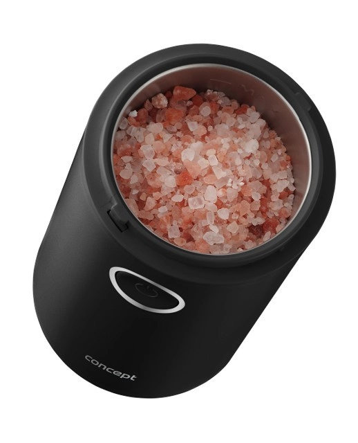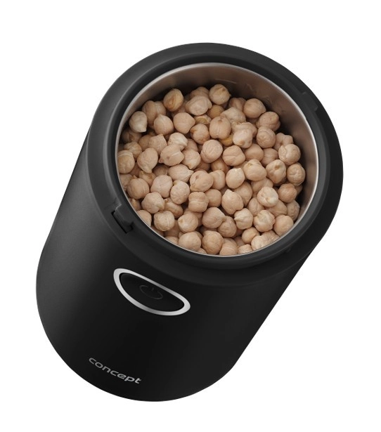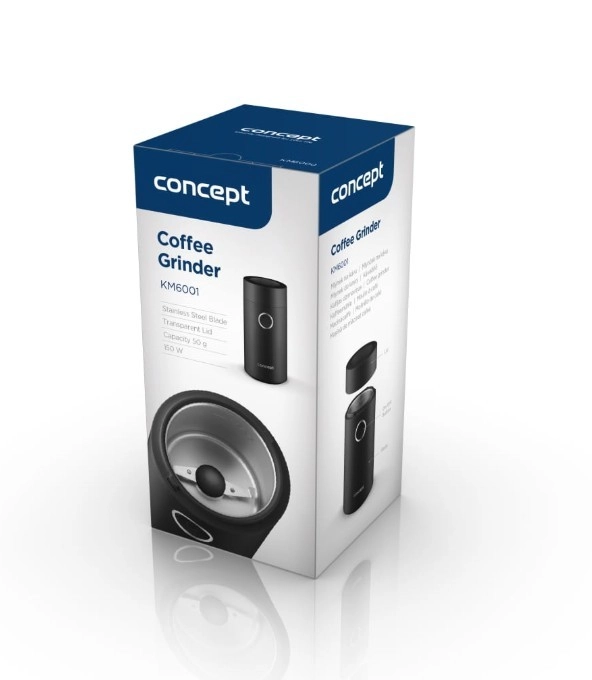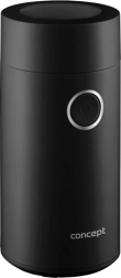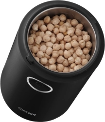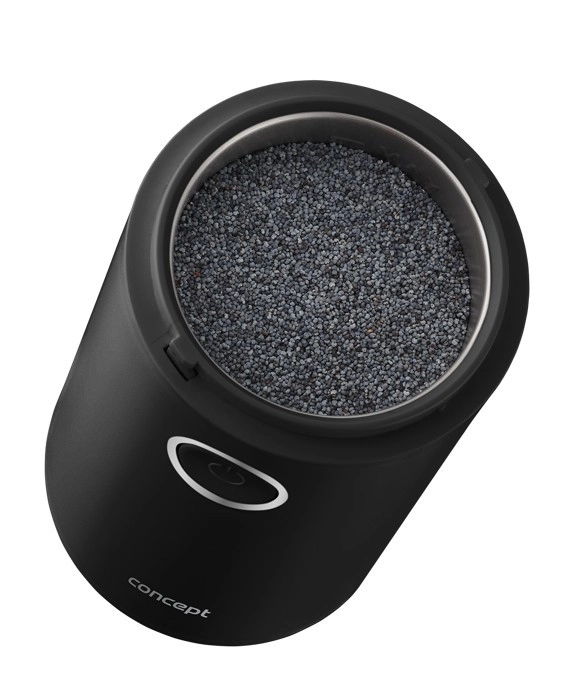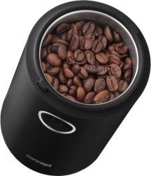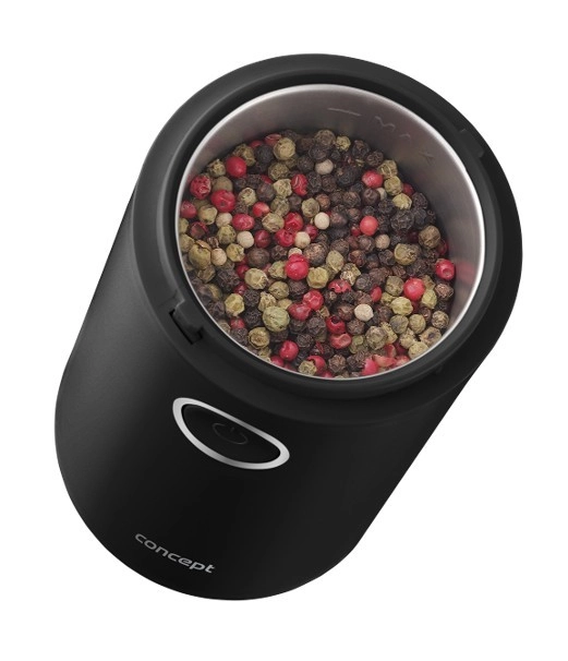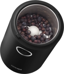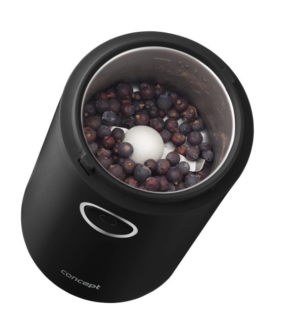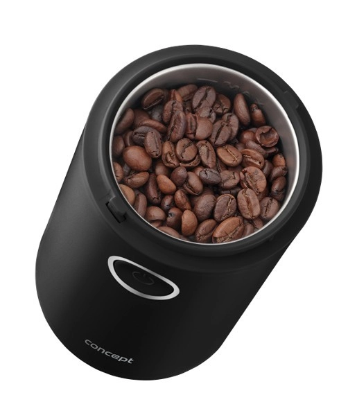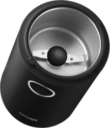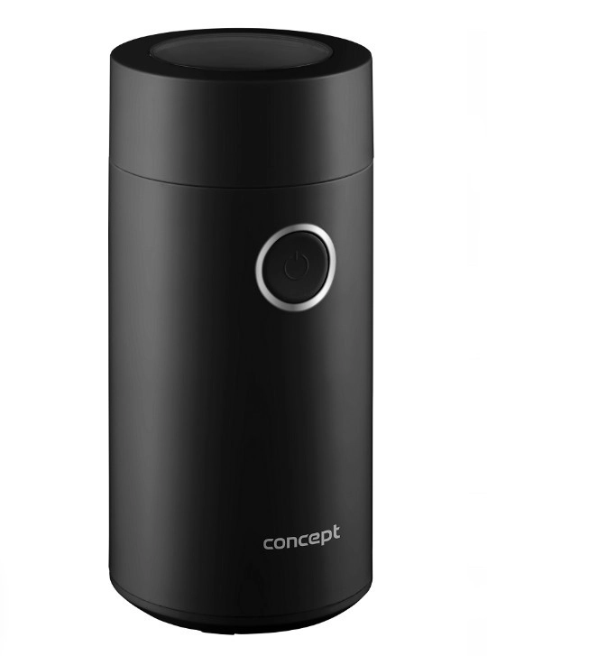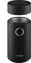 Užijte si vůni čerstvě namleté kávy s kompaktním mlýnkem CONCEPT v elegantní černé barvě. Nabízí rychlé mletí až 22 000 ot./min, ostrý nerezový dvoulistý nůž, jednoduché ovládání jedním tlačítkem a průhledné víčko pro perfektní kontrolu hrubosti. Vhodný také na koření, bylinky, ořechy a mák.