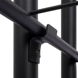 Pevný ocelový rám v matné černé barvě poskytuje stabilitu a dlouhou životnost, vhodný do interiéru i na zastřešené venkovní plochy.