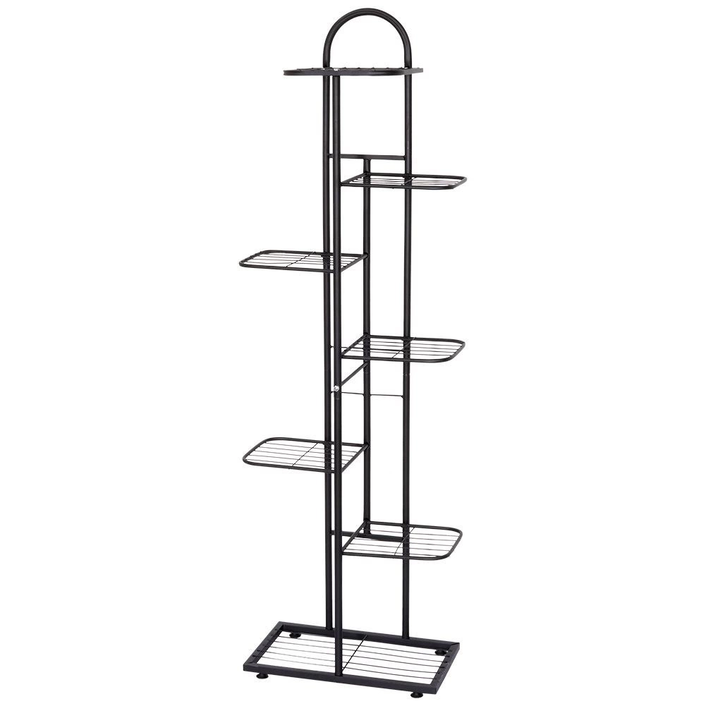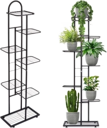 Stylový a praktický květinový stojan se 7 úrovněmi pro vystavení rostlin i dekorací. Robustní kovová konstrukce v matné černé barvě, stabilní základna a úspora místa díky vertikálnímu designu. Ideální do interiéru i na zastřešený balkon, v loftovém industriálním stylu.