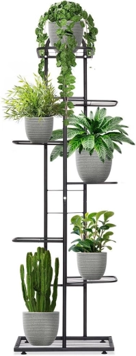 Vysoký květinový stojan o výšce 138 cm nabízí chytré vertikální ukládání a elegantní prezentaci vašich oblíbených rostlin. Sedm různě umístěných polic dodá kompozici vzdušnost, každá rostlina získá dostatek světla a vaše domácnost získá výrazný dekorativní prvek v moderním industriálním stylu.