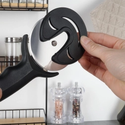 Objevte spolehlivý kráječ na pizzu s odolným nerezovým kotoučem, který hladce projede tenkým i silným těstem. Ergonomicky tvarovaná rukojeť skvěle sedí v ruce a zajišťuje jistý úchop, zatímco ochranný kryt umožní bezpečné uložení v zásuvce.
