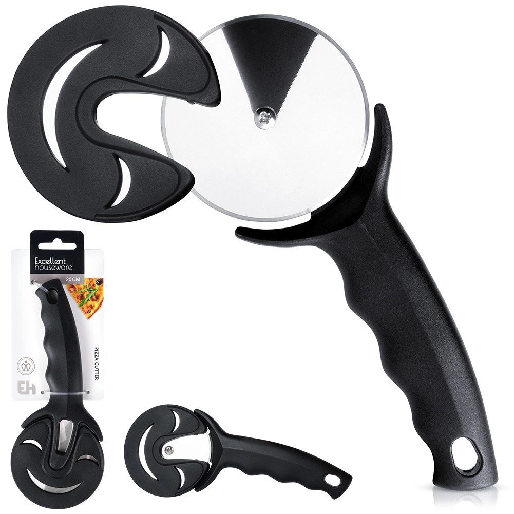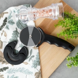 Praktický kráječ na pizzu s kulatým kotoučem z nerezové oceli a ochranným krytem nabízí pohodlné a bezpečné krájení. Má ergonomickou rukojeť s otvorem na zavěšení, snadno řeže i silnější těsto a díky ostrému rotačnímu kolečku dělí pizzu na rovnoměrné dílky. Odolné materiály, bezpečné uložení s krytkou a snadná údržba.