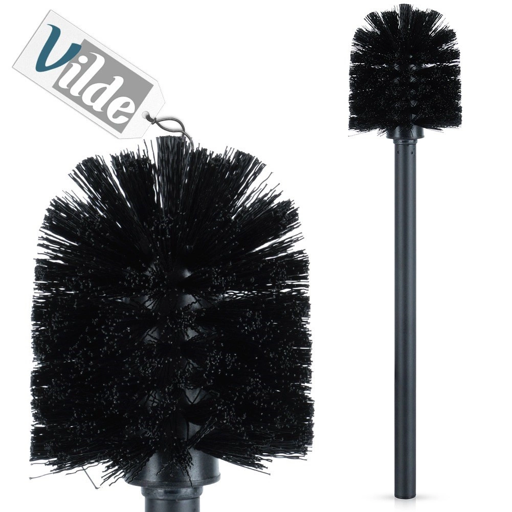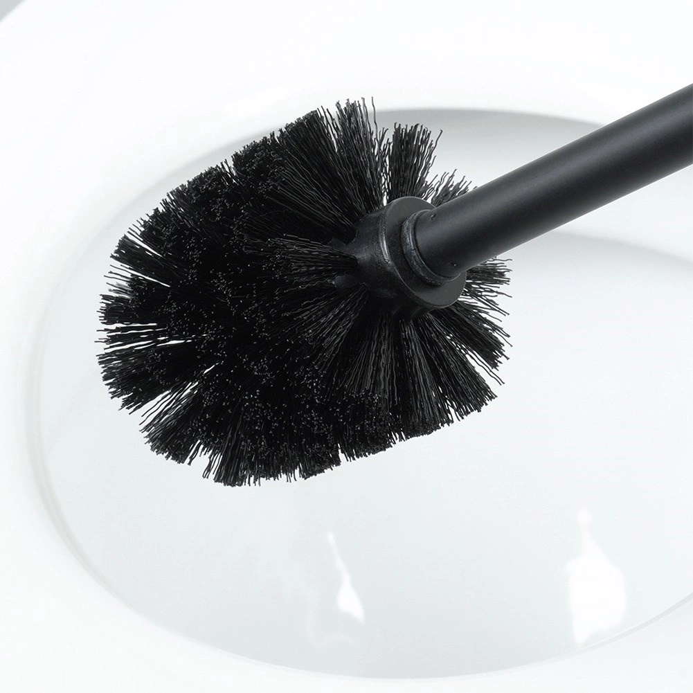 Udržujte toaletu hygienicky čistou s náhradním kartáčem, který kombinuje odolnost, snadnou údržbu a moderní vzhled. Černé, husté štětiny z pevného plastu zajišťují důkladné drhnutí i pod okrajem mísy a zároveň působí stále čistě. Díky univerzálním rozměrům jej snadno vložíte do většiny běžných nádob na WC kartáč.