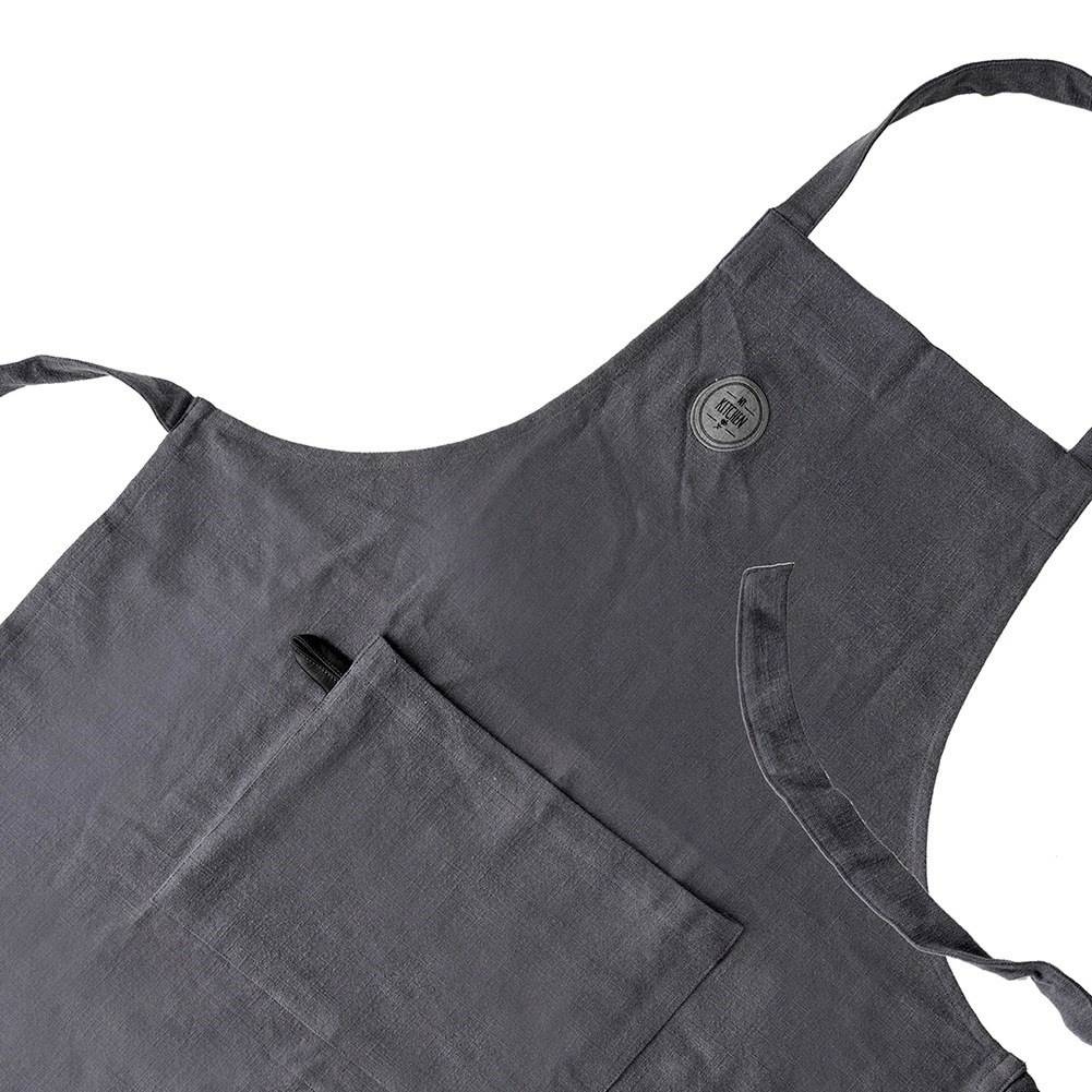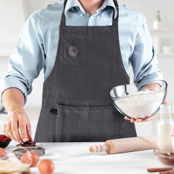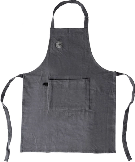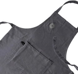 Příjemný a pevný bavlněný materiál v tmavě šedém odstínu lze prát do 40 °C, takže zástěra zůstane dlouho jako nová.