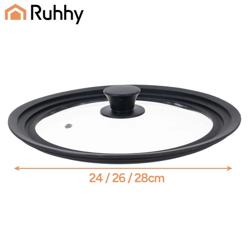 Praktická univerzální poklice 3 v 1 od značky RUHHY nahradí tři běžné poklice a ušetří místo v kuchyni. Díky průměrům 24/26/28 cm sedí na hrnce i pánve, žáruvzdorné sklo umožňuje kontrolu vaření, silikonový okraj zajišťuje těsnost a chrání hrany nádobí, a parní ventil brání překypění. Vhodná do myčky, pohodlné ergonomické držadlo, bezpečné materiály s certifikací LFGB.