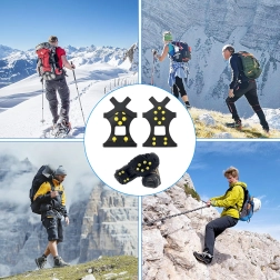 Spolehlivé protiskluzové návleky na boty s kovovými hroty pro bezpečný krok na sněhu, ledu i blátě. Vyrobené z odolné gumy TPE a kovu, nabízejí výbornou přilnavost, stabilitu a snadné nasazení. 10 kovových hrotů poskytuje jistotu při každém kroku, návleky jsou lehké, elastické a skladné – ideální na turistiku, do práce v terénu i na každodenní zimní chůzi.