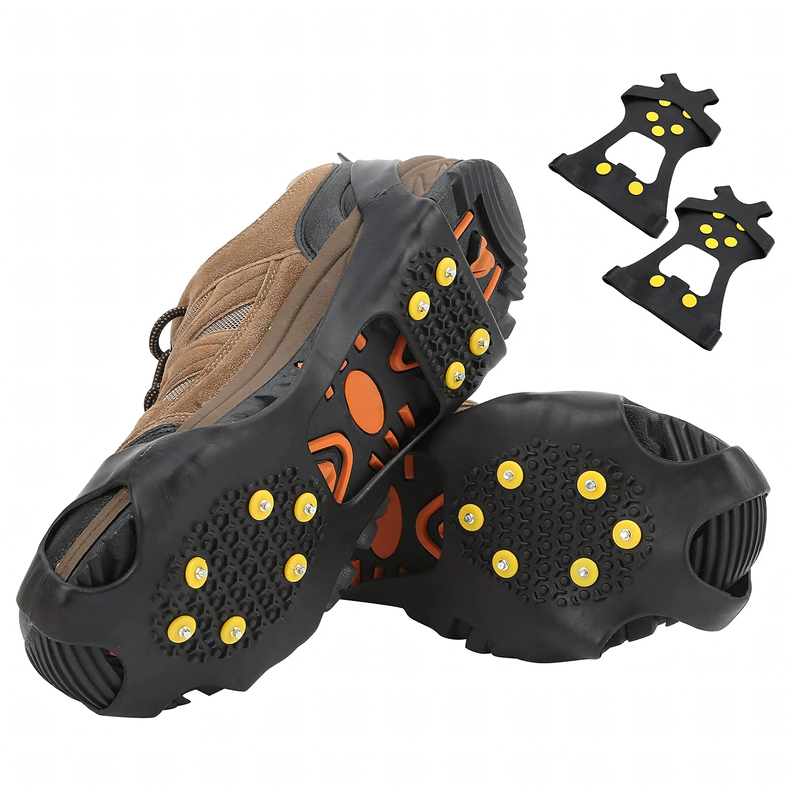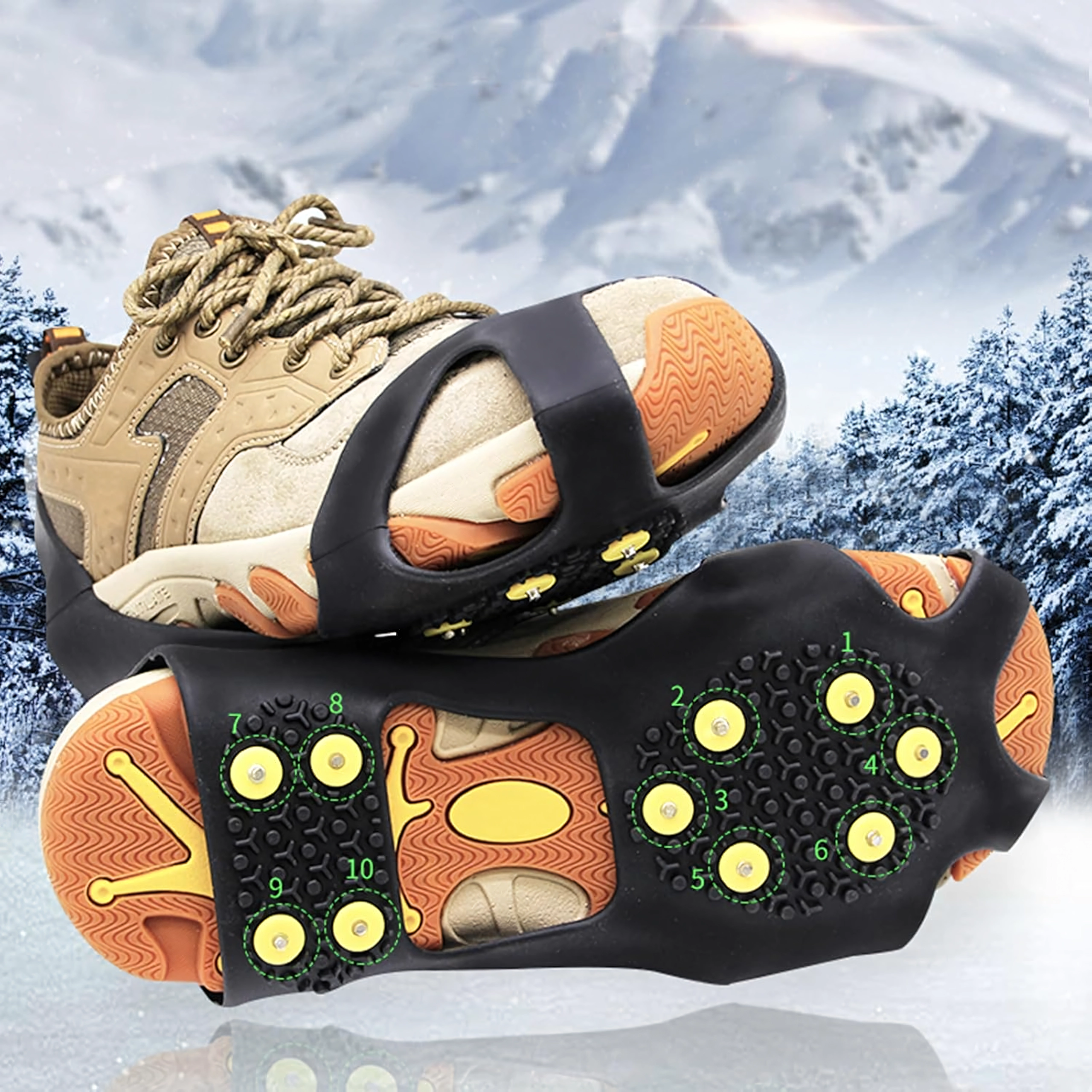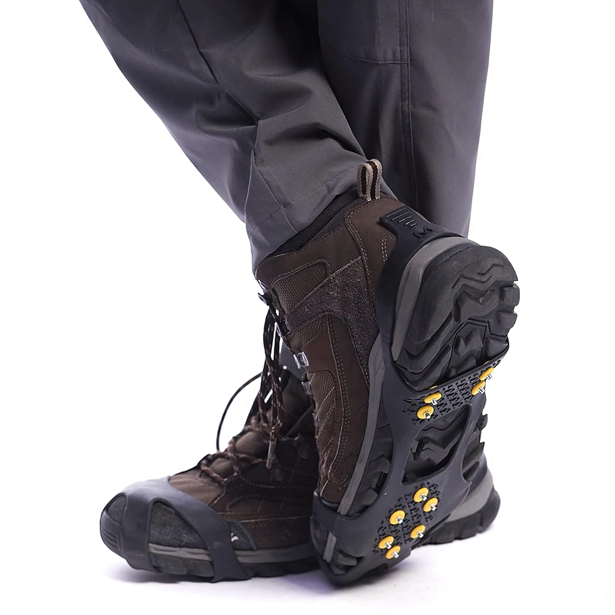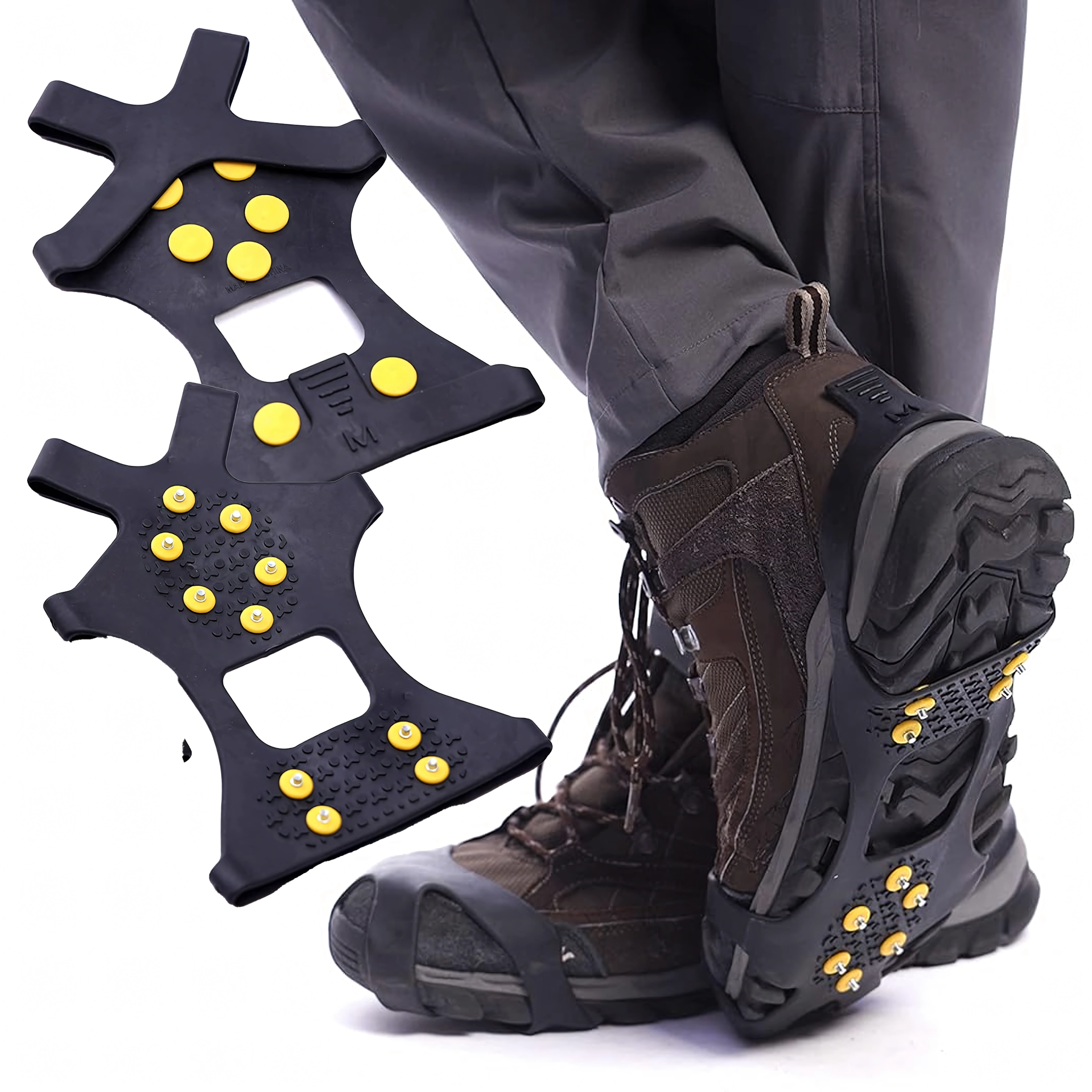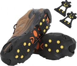 Hledáte jednoduchý způsob, jak zvýšit bezpečnost chůze v zimě? Tyto protiskluzové návleky se 10 kovovými hroty doplní podrážku vašich bot o výraznou trakci na ledu, uježděném sněhu i rozbředlém povrchu. Pevný, přesto pružný materiál TPE se snadno natáhne přes špičku a patu, drží na místě a neklouže.