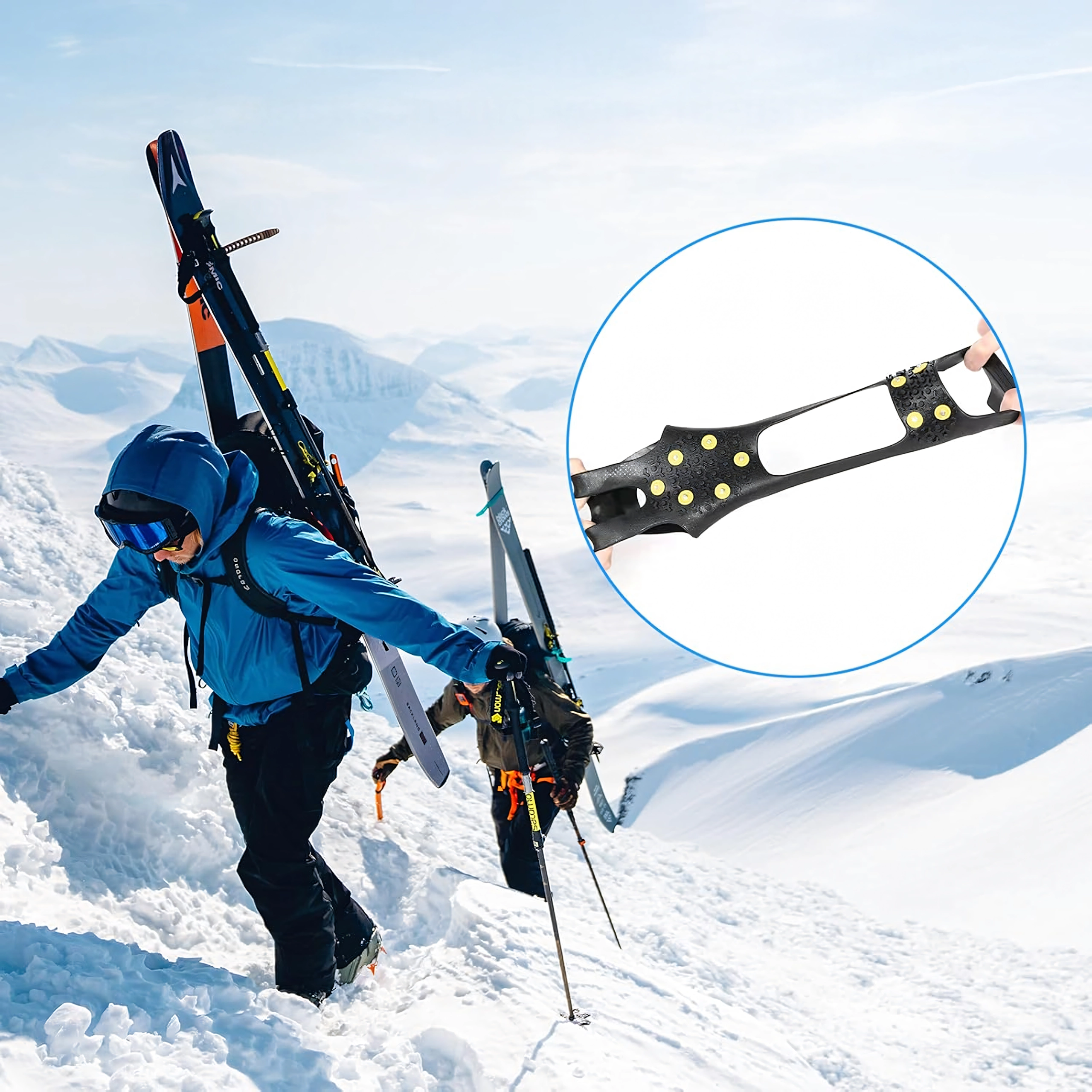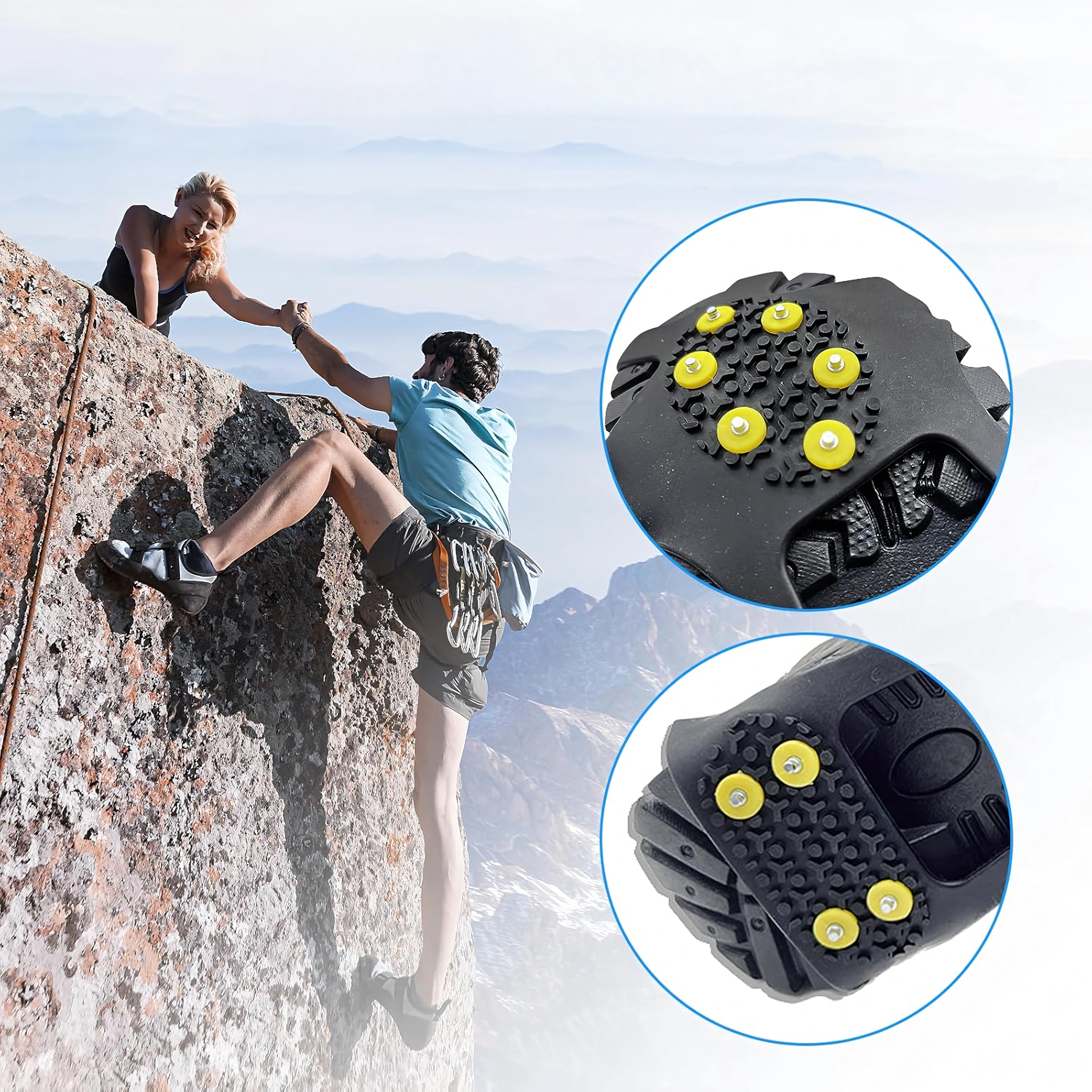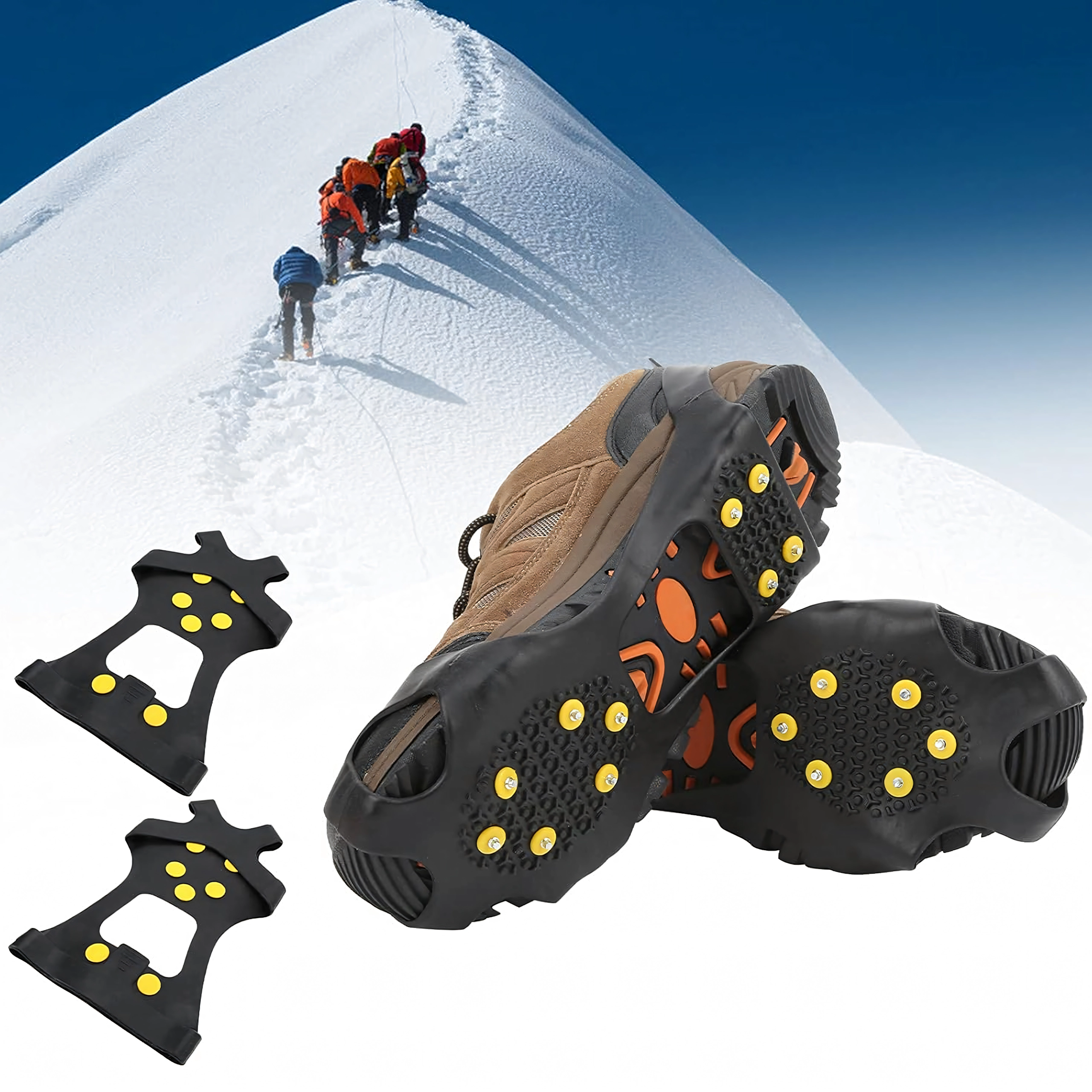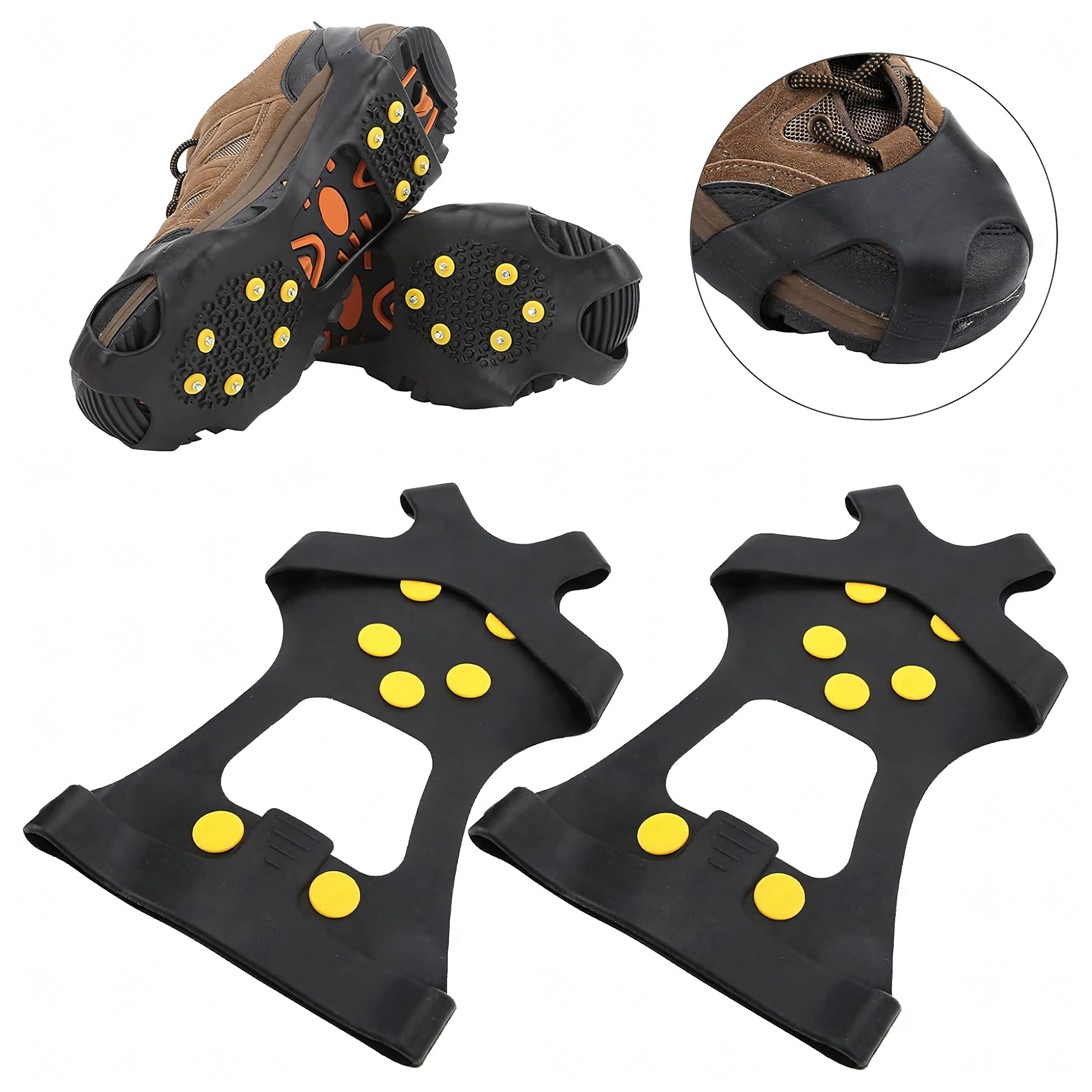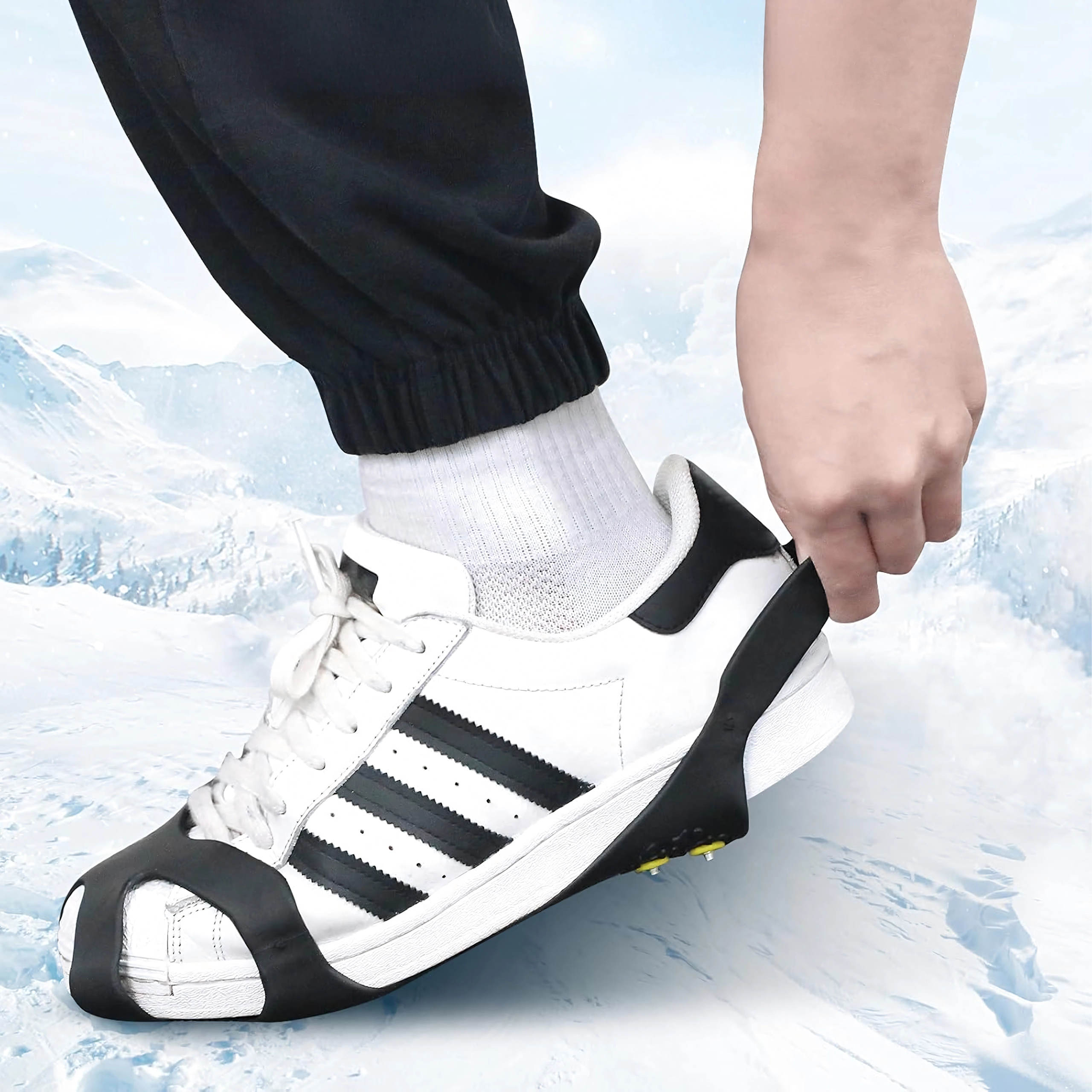 Hledáte jednoduchý způsob, jak zvýšit bezpečnost chůze v zimě? Tyto protiskluzové návleky se 10 kovovými hroty doplní podrážku vašich bot o výraznou trakci na ledu, uježděném sněhu i rozbředlém povrchu. Pevný, přesto pružný materiál TPE se snadno natáhne přes špičku a patu, drží na místě a neklouže.