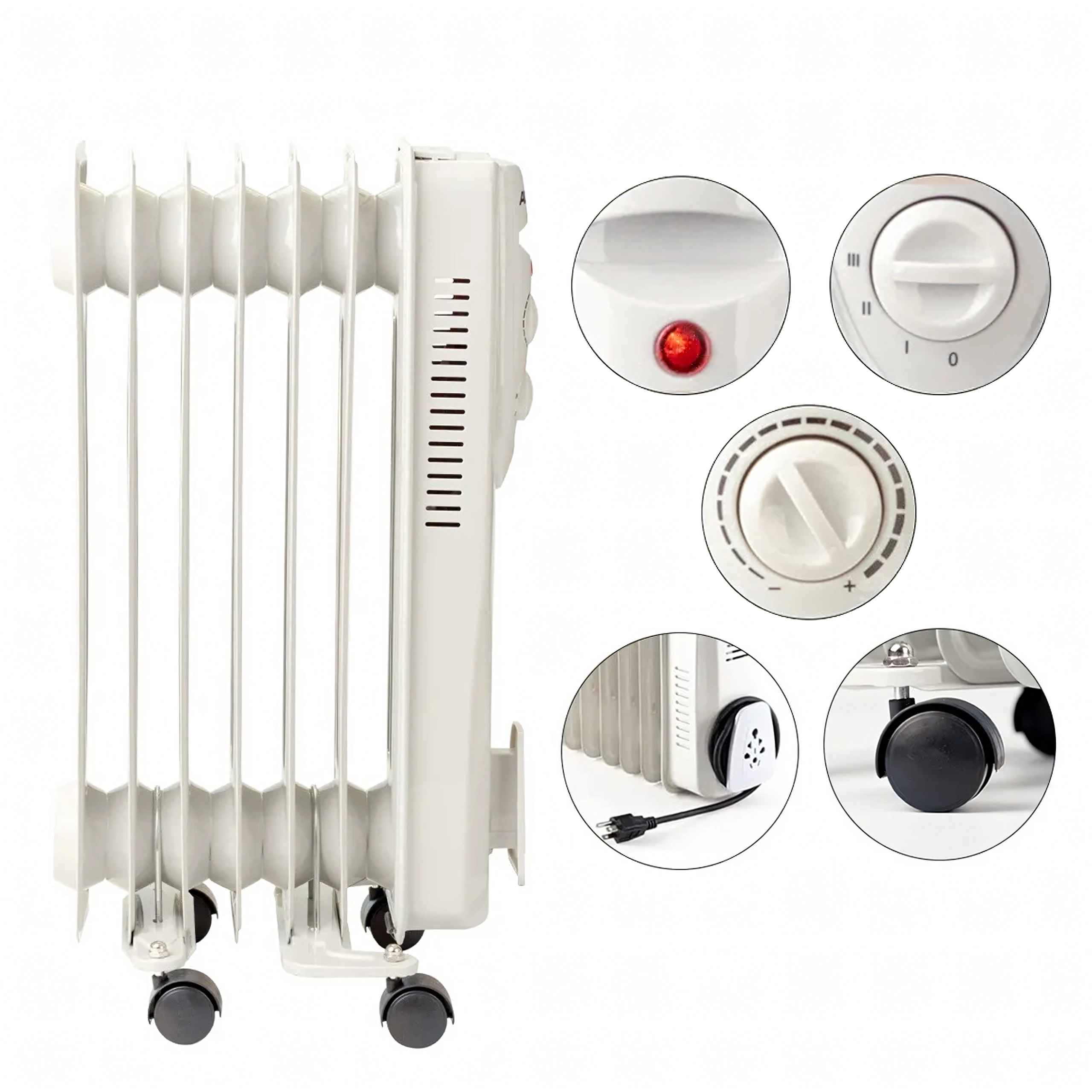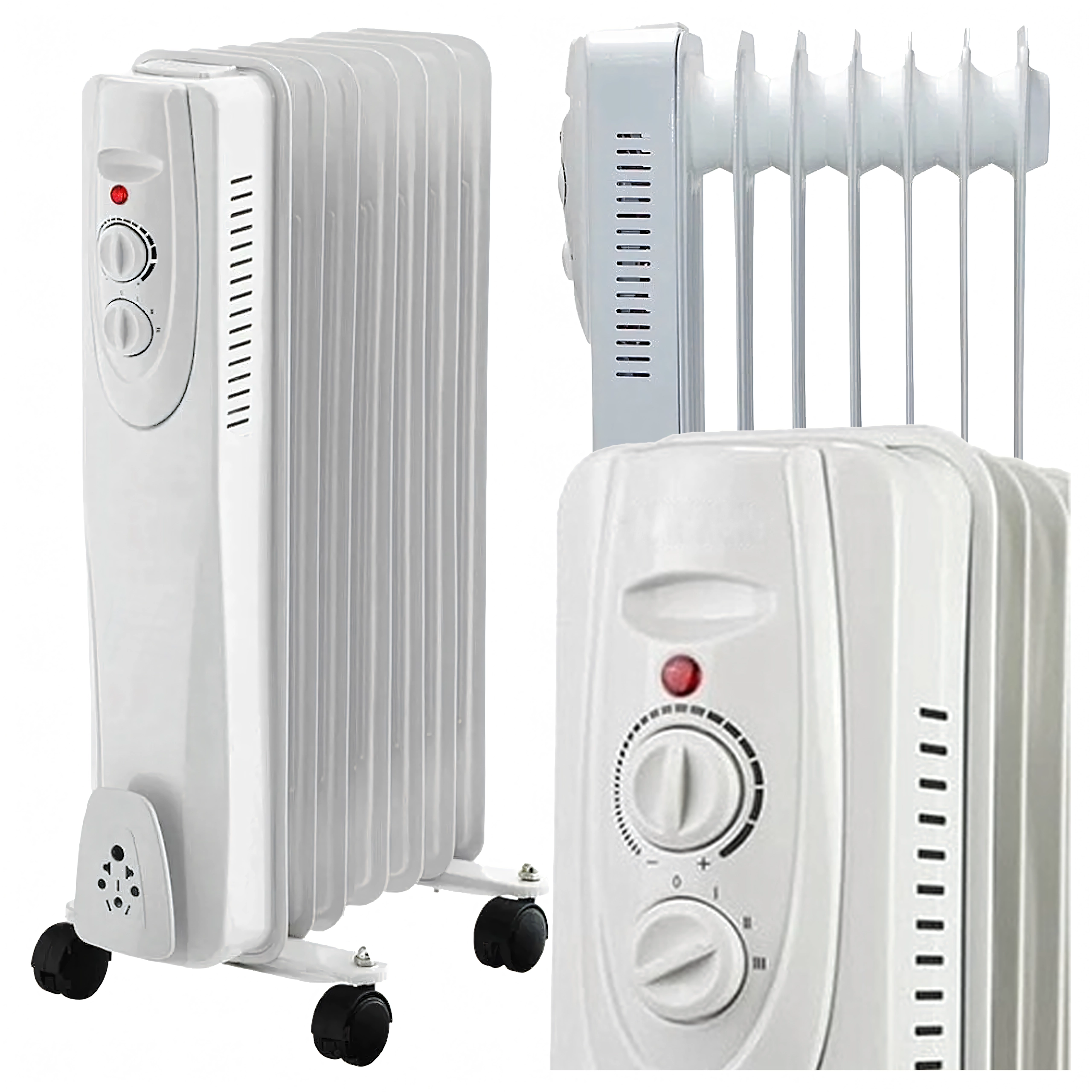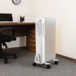 Kompaktní olejový radiátor o výkonu 1500 W zajistí rychlé a úsporné vytápění menších až středně velkých místností. Díky přesnému termostatu a 3 stupňům výkonu si snadno nastavíte ideální teplotu. Elegantní bílý design se hodí do domu, kanceláře i dílny, zatímco kolečka 360° a úchyt na kabel usnadní přemístění a skladování.
