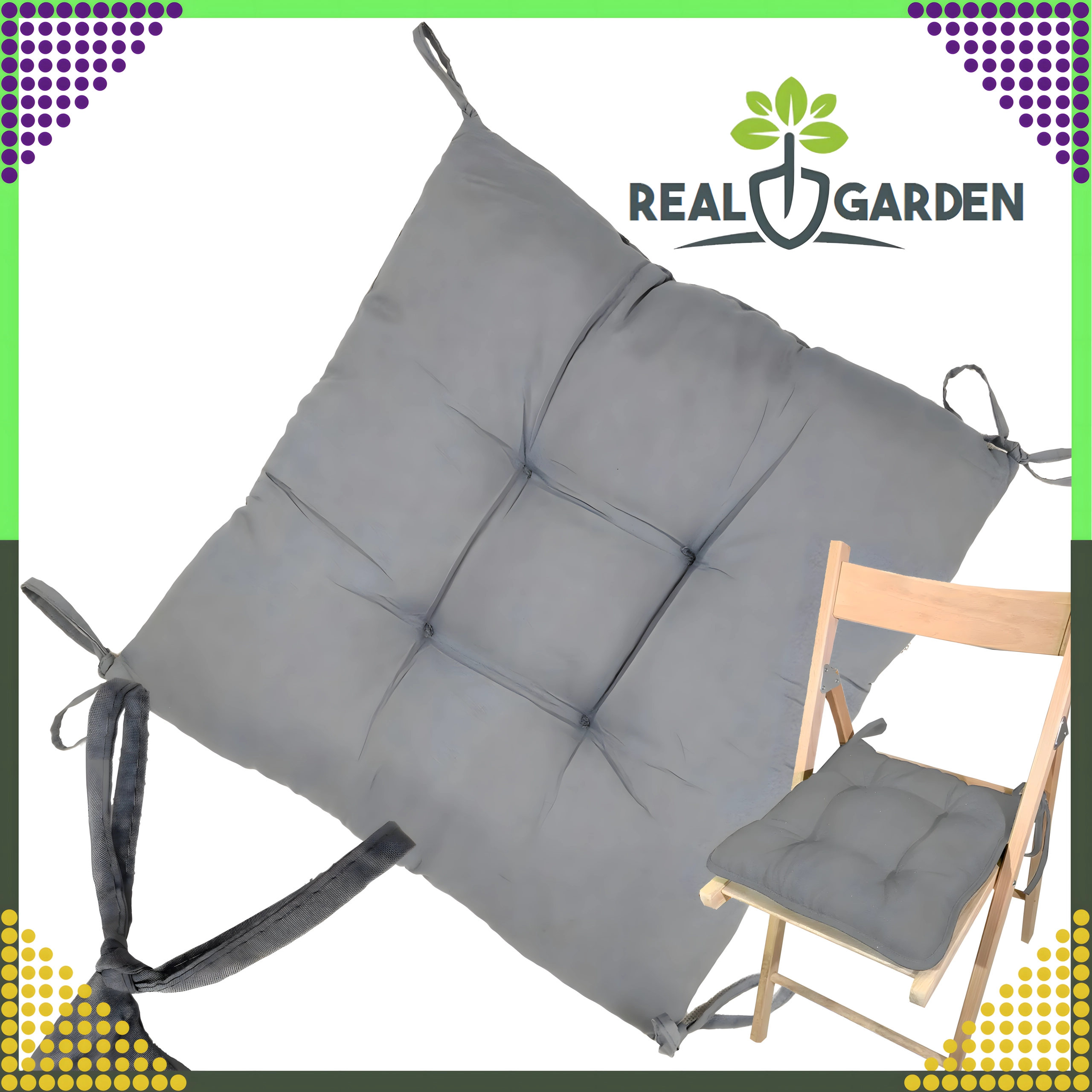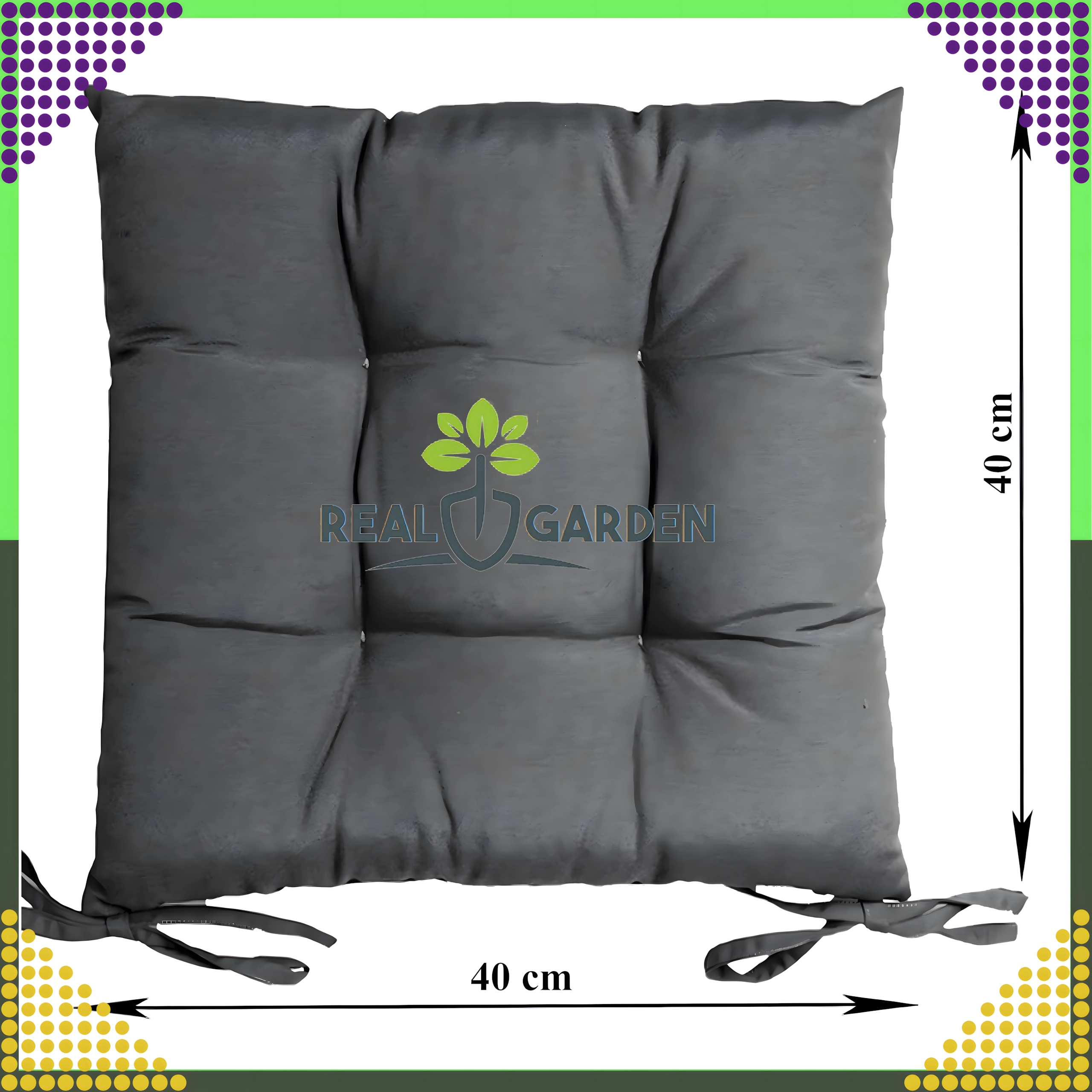 Pohodlný a odolný polštář na židli o rozměrech 40 × 40 × 8 cm pro kuchyni, obývák i zahradu. Díky páskům na uvázání zůstane na místě, pěnová výplň drží tvar a příjemná pikovaná tkanina zajistí komfortní sezení.