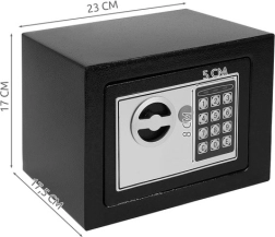 Bezpečný a snadno ovladatelný trezor s elektronickým zámkem je ideální pro uložení hotovosti, šperků, dokladů a dalších drobností. Programovatelný kód (3–8 číslic) umožňuje rychlý přístup, zatímco záložní mechanický klíč slouží pro nouzové otevření. Po třech chybných pokusech se aktivuje 30sekundová blokace se světelnou a zvukovou signalizací.