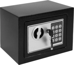 Kompaktní elektronický trezor pro domácnost, kancelář i hotel zajistí vaše cennosti díky digitálnímu kódu a záložnímu klíči. Odolná ocelová konstrukce, blokace po 3 chybných pokusech, signalizace stavu baterie a možnost ukotvení do zdi či skříně nabízí spolehlivé a pohodlné zabezpečení dokumentů formátu A5, hotovosti i šperků.