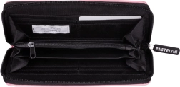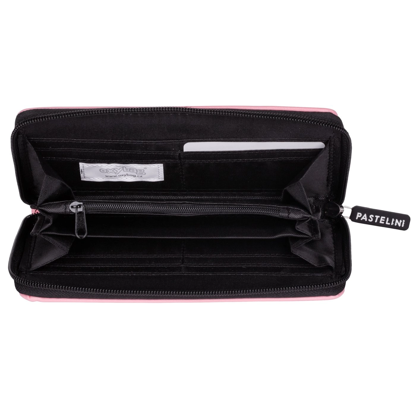 Stylová růžová peněženka s obvodovým zipem a minimalistickým logem PASTELINI bezpečně pojme bankovky i karty a skvěle padne do ruky.