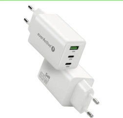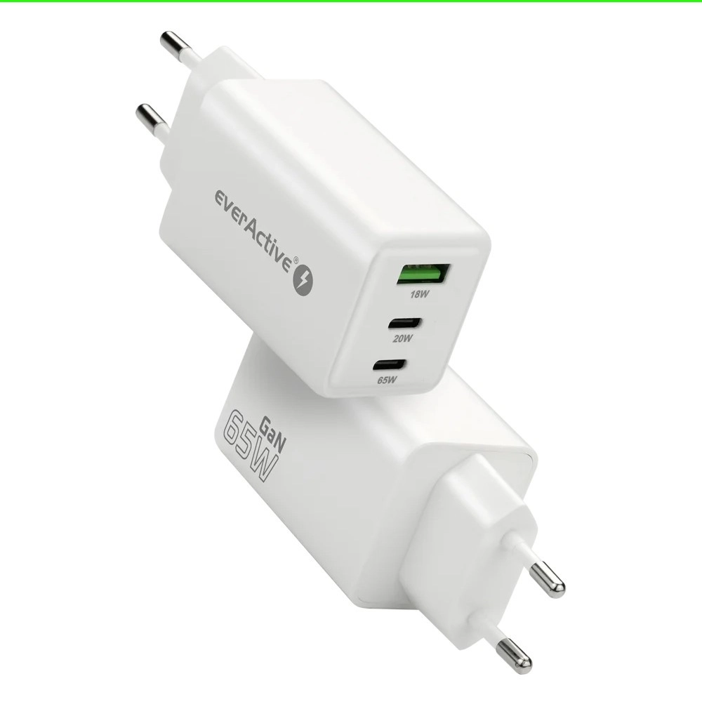 Nabíječka everActive GaN 65W přináší moderní a účinné nabíjení v elegantním bílém provedení. Díky polovodičové technologii GaN je menší, chladnější a efektivnější než běžné adaptéry, přesto zvládne napájet i náročnější zařízení včetně ultrabooků a iPadů.