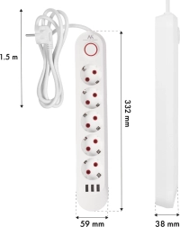 Tato víceúčelová napájecí lišta kombinuje klasické zásuvky a USB nabíjení v jednom zařízení. Díky 5 síťovým zásuvkám a 3 USB portům snadno připojíte počítač, monitor, TV, tiskárnu či nabíječky telefonů a tabletů bez nutnosti dalších adaptérů. Lišta je ideální pro pracovní stůl, obývací pokoj i domácí kancelář.