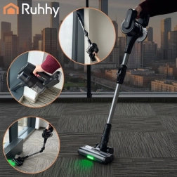 Ruhhy LunPro přináší moderní úklid bez kabelu: stálý výkon BLDC motoru 400 W bez poklesů, tichý chod a dlouhá životnost. Baterie Li‑Ion 25,9 V zajistí v eco režimu až 52 minut úklidu, takže bez přerušení zvládnete celé bydlení. LED osvětlení na podlahové hubici odhalí prach a drobky i v tmavých koutech.