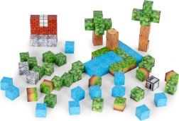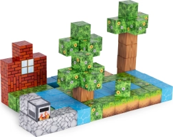 Texturované povrchy kostek připomínající trávu, vodu, dřevo či kámen inspirují ke tvorbě stromů, cestiček, řek a domečků – představivosti se meze nekladou.