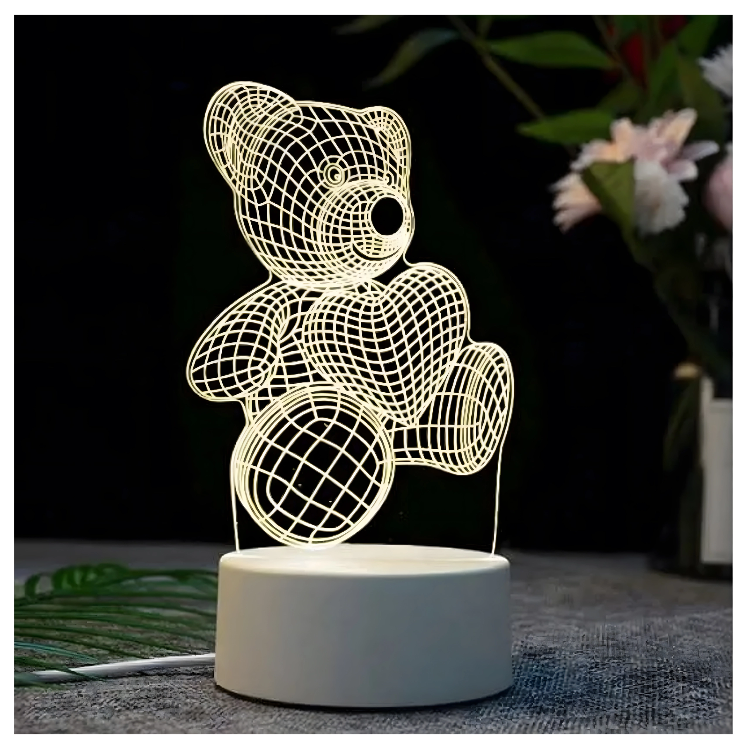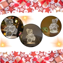 Roztomilá noční LED lampa s motivem medvídka vytváří působivou 3D iluzi a jemné teplé ambientní světlo pro dětský pokoj, ložnici i pracovní stůl. Jednoduché dotykové ovládání, bezpečné LED osvětlení a napájení USB nebo bateriemi z ní dělají skvělý dárek a stylový doplněk interiéru.