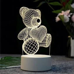 Tato dekorativní noční lampa ve tvaru medvídka držícího srdce využívá čirý akryl s gravírovanou mřížkou, který po rozsvícení vytváří realistický 3D efekt. Díky měkkému, uklidňujícímu světlu je ideální pro usínání dětí, večerní čtení nebo jemné nasvícení polic a stolků.