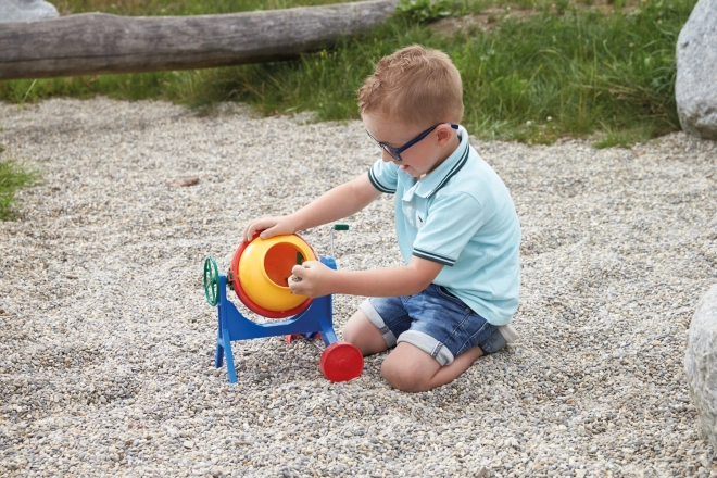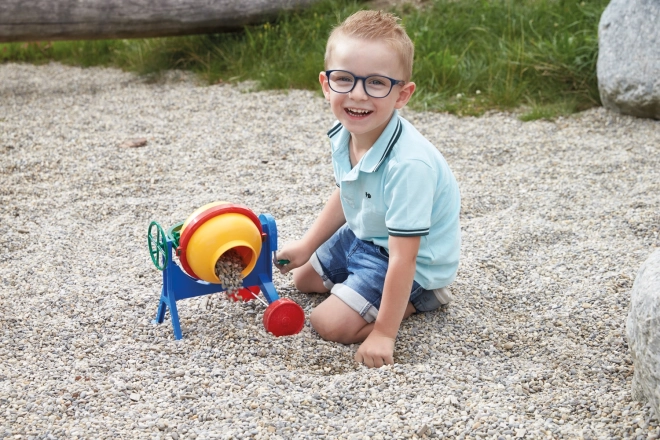 Tato barevná dětská míchačka věrně napodobuje skutečný stavební stroj. Pomocí boční kliky lze snadno otáčet bubnem a míchat písek či drobné kamínky. Díky stabilnímu rámu a hladkým hranám je hra bezpečná a zábavná.