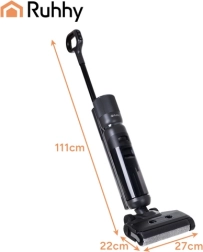 Jedno přejetí stačí: RUHHY Lixo současně sbírá suché nečistoty a myje tvrdé podlahy. Ideální pro kuchyně, chodby i denní rychlý úklid.