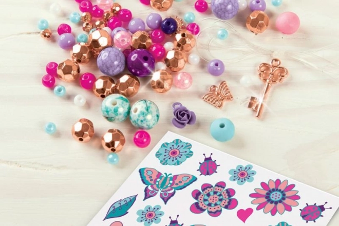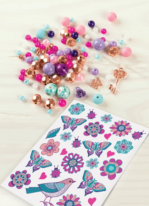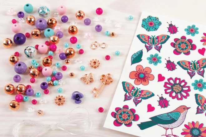 Rozviň kreativitu a navrhni si vlastní květinové náramky, které sladíš s dočasnými tetováními. Díky pestrým korálkům, přívěskům a jednoduchému navlékání vzniknou během chvilky šperky, které potěší každou malou parádnici.