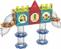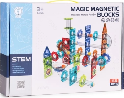 Tato magnetická kuličkodráha kombinuje transparentní trubice, nájezdy a magnetické panely, takže děti jasně vidí pohyb kuliček a přirozeně se učí principům gravitačního zrychlení, hybnosti a plánování trasy. Díly se k sobě automaticky přitahují a pevně drží, takže stavba je rychlá, intuitivní a bez frustrace.