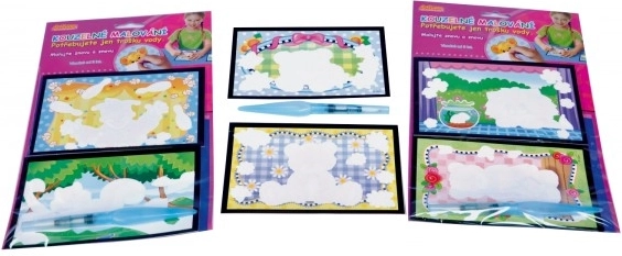 Kouzelné malování vodou je skvělý způsob, jak zabavit malé výtvarníky bez potřeby barev či štětců. Díky speciálním obrázkům potaženým bílou vrstvou, která po navlhčení zmizí, vytvoří děti barevné umělecké dílo.