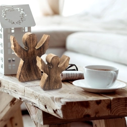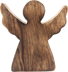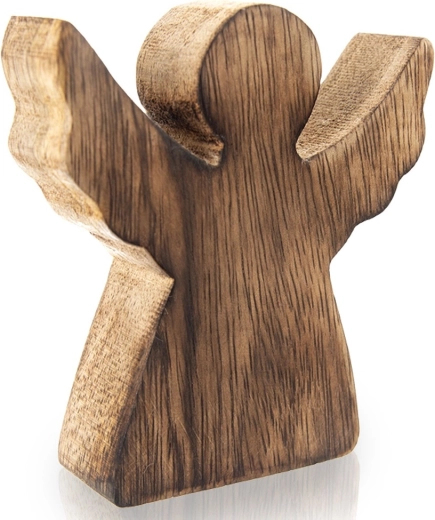 Tato elegantní figurka anděla je vyrobena z kvalitního mangového dřeva v přírodním odstínu. Minimalistická silueta s rozevřenými křídly vypadá efektně na poličce, komodě i svátečně prostřeném stole. Díky nadčasovému vzhledu se hodí na zimní a vánoční období, ale ozdobí domov po celý rok.