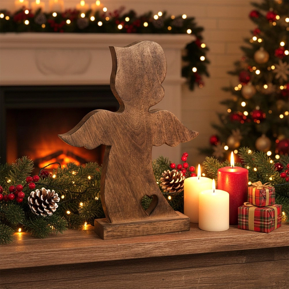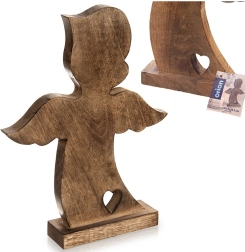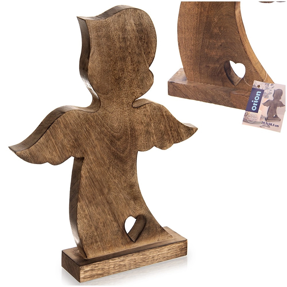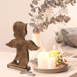 Andělská figurka z kvalitního mangového dřeva vyniká přírodním vzhledem a čistými liniemi. Díky pevnému podstavci je stabilní a připravená k okamžitému vystavení v obýváku, ložnici, předsíni i kanceláři. Minimalistický tvar s výřezem srdce podtrhne útulnou atmosféru domova, zejména v období Vánoc, ale i během celého roku.