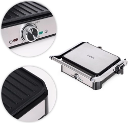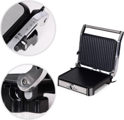 - Nastavitelná výška víka pro tenké sendviče i vysoké steaky