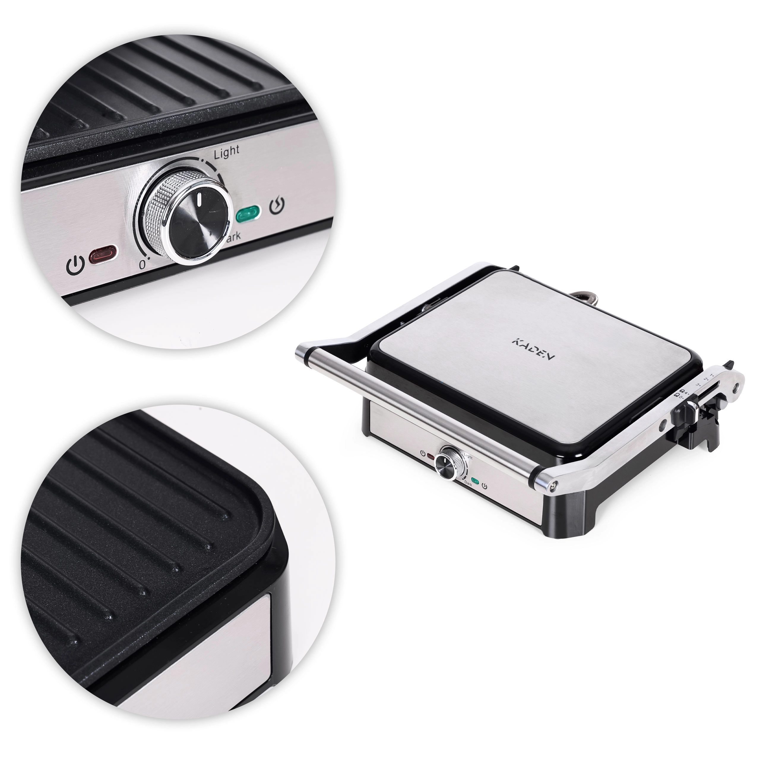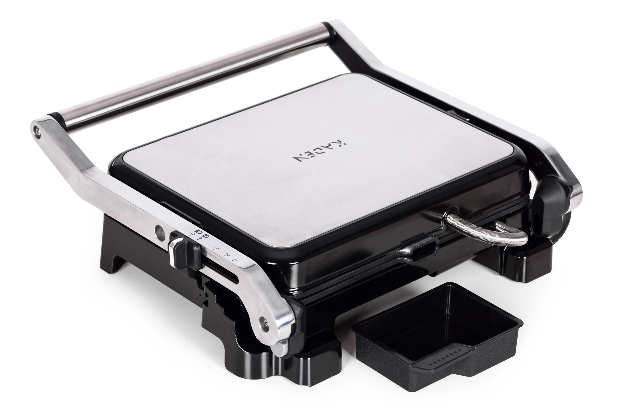 Užijte si domácí grilování po celý rok. Kontaktní gril KADEN kombinuje rychlé nahřívání, rovnoměrný přenos tepla a praktické detaily, které z něj dělají ideální volbu pro panini, toasty, maso i zeleninu. Žebrované desky zanechají atraktivní mřížkový otisk a pomáhají odvádět přebytečný tuk do vyjímatelné misky.