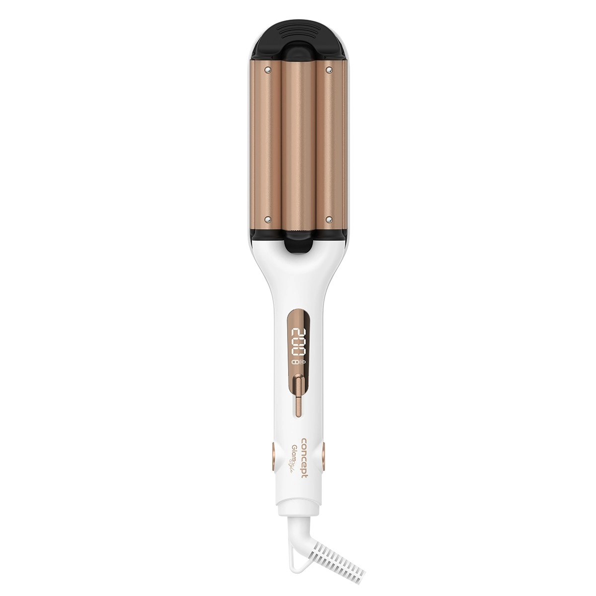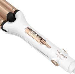 Objevte snadné vlnění s vlnkovačem CONCEPT GlamStyle KT2140. Tři topné válce vytvářejí jemné, pružné a dlouhotrvající vlny, které vypadají přirozeně a dodají účesu objem. Ceramický povrch zajišťuje rovnoměrné rozložení tepla a chrání vlasy před přehřátím – výsledkem jsou hebké a lesklé vlny po celý den.