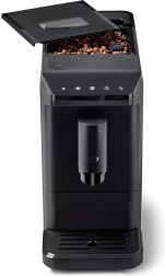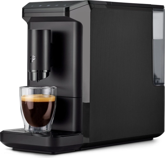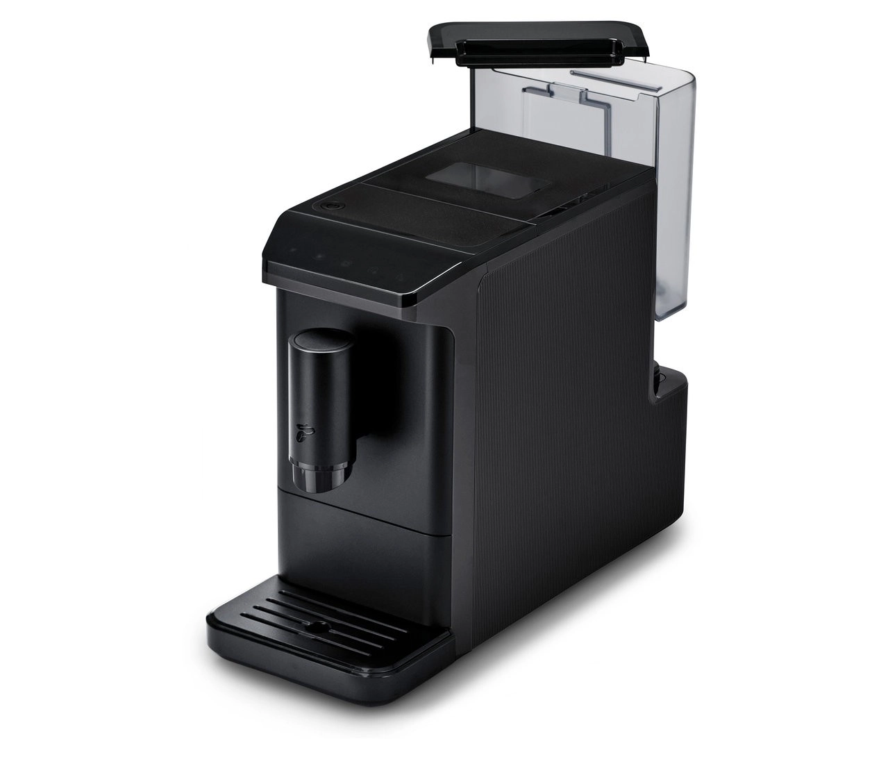 Obsluha je intuitivní: dotyková tlačítka pro rychlou volbu nápojů, snadno vyjímatelná nádržka na vodu a odkapávací miska pro jednoduché čištění. Díky automatickému programu odvápnění si kávovar udržuje dlouhou životnost a stabilní kvalitu extrakce.