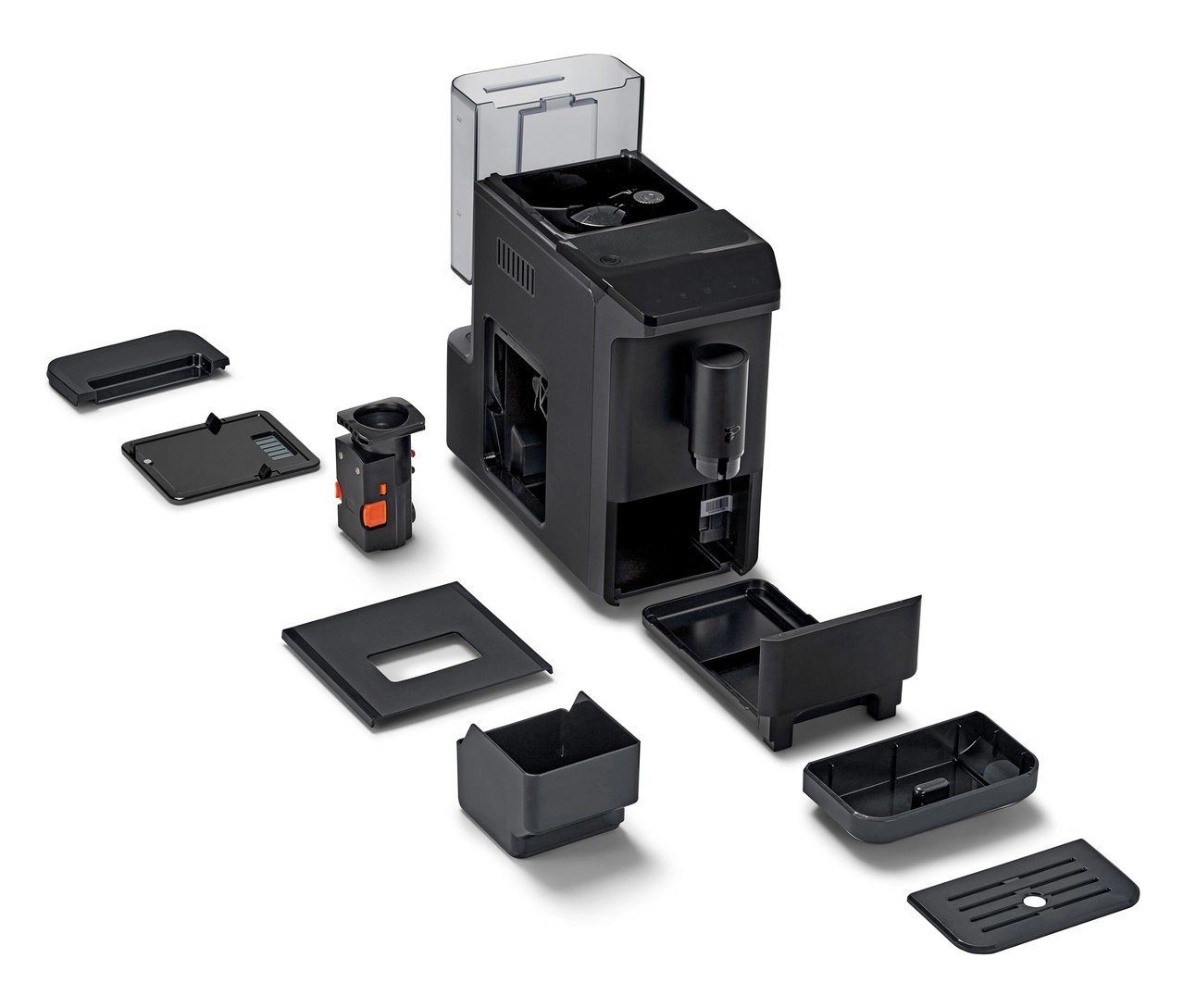 Vyjímatelná nádržka na vodu a odkapávací miska usnadňují čištění. Automatické odvápnění udržuje kávovar ve špičkové kondici.